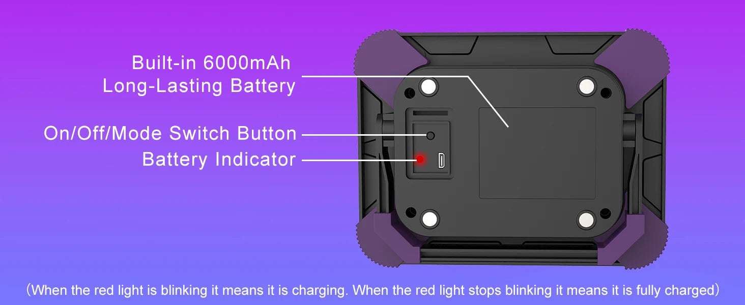 Working hours: Low brightness (6-10 hours)/High brightness (4-6 hours)