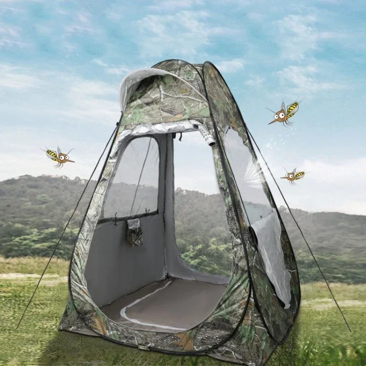 1-2Person Camouflage Ice Fishing Tent Anti-Mosquito Rain-Proof Sunscreen Double Doors 2 Windows Pop-Up Quick Open150x150x190cm