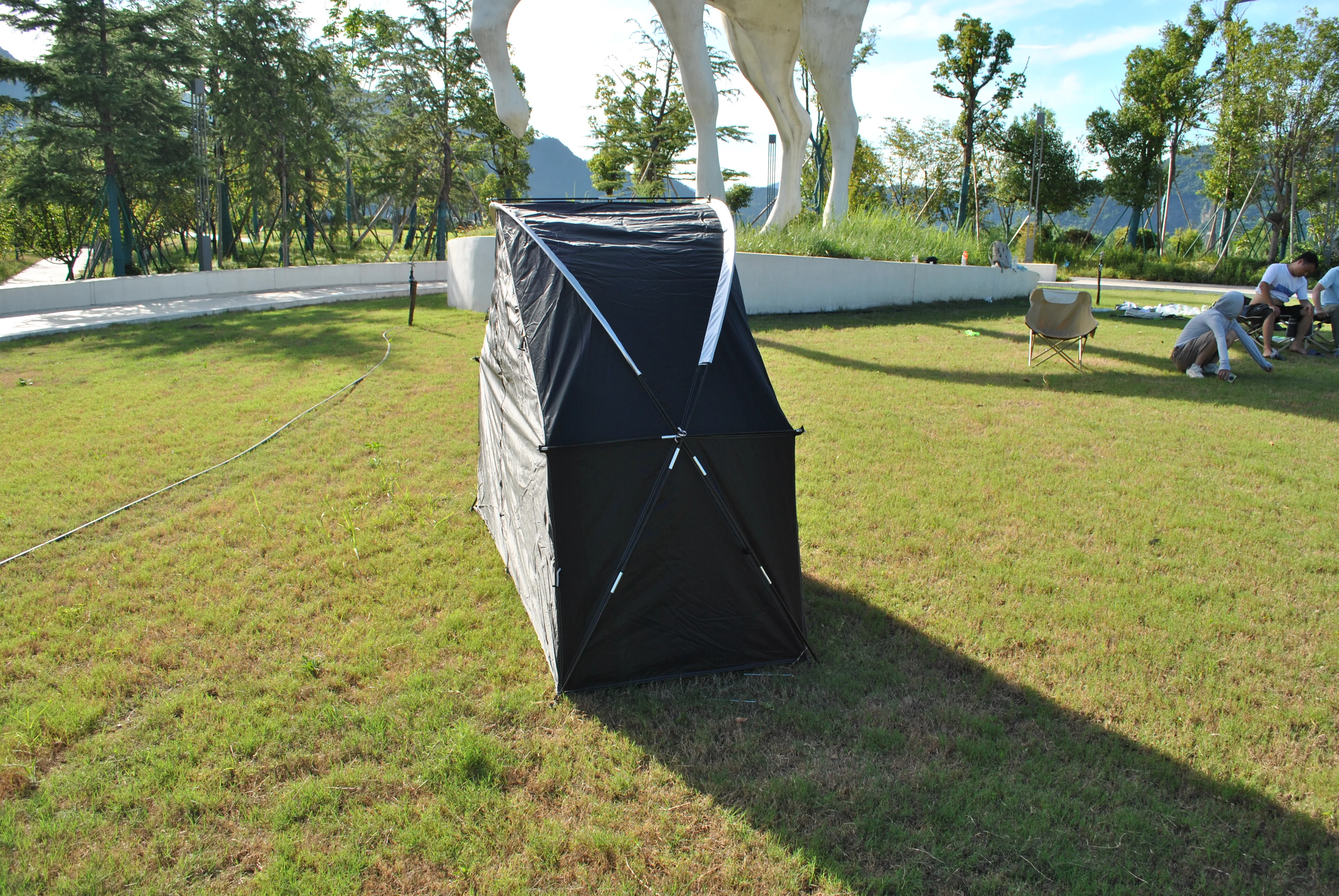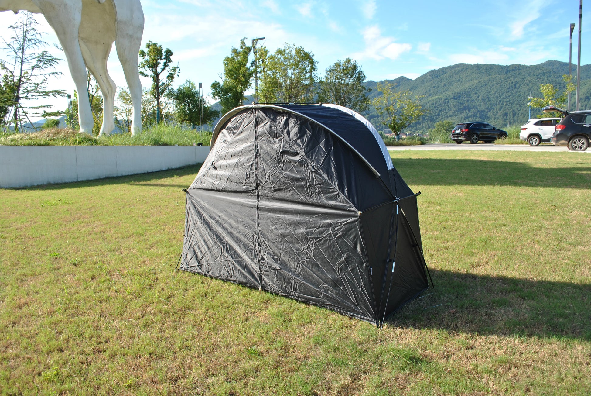 1.Our storage tent boasts a cross-pole design that stands as a testament to strength and durability.