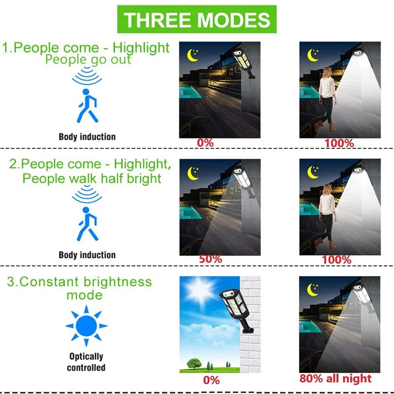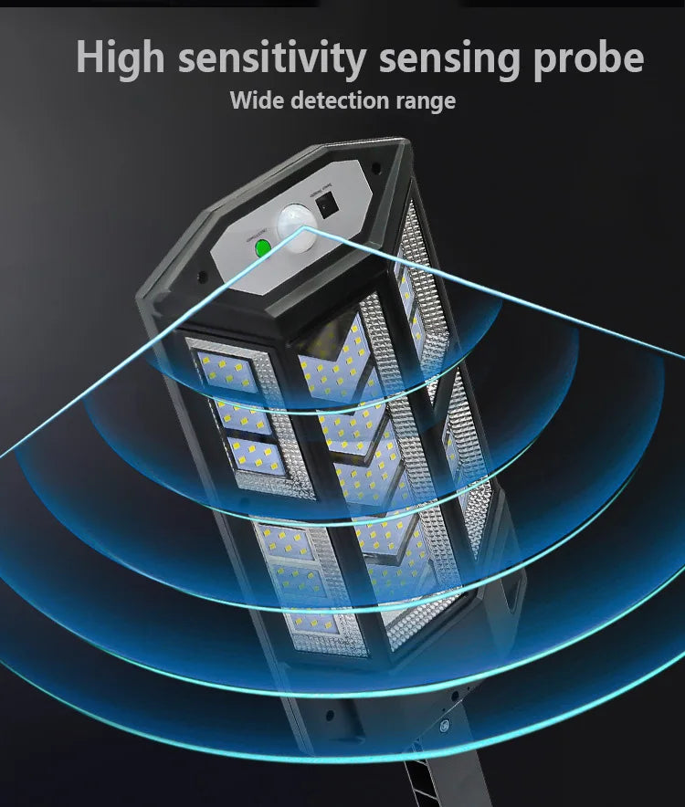 【High Brightness】The super solar street light adopts 3-sided super bright LED wick, the maximum brightness is 10000 lumens.