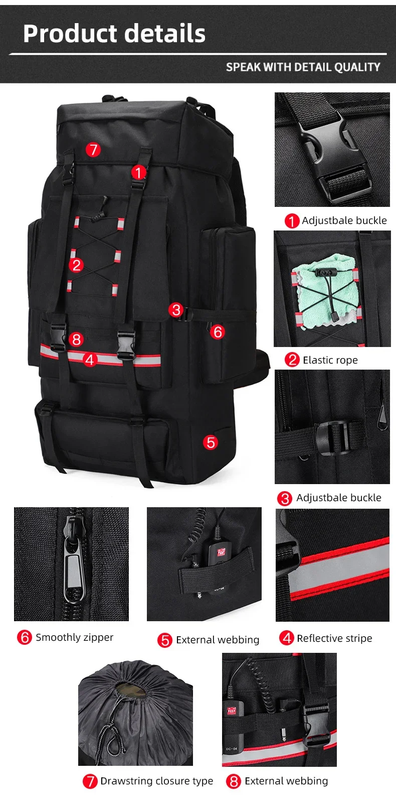 130L Hiking Camping Backpack Travel Large Luggage Bag Men Trekking Outdoor Sports Pack Molle Trekking Rucksack for Men Big Bag