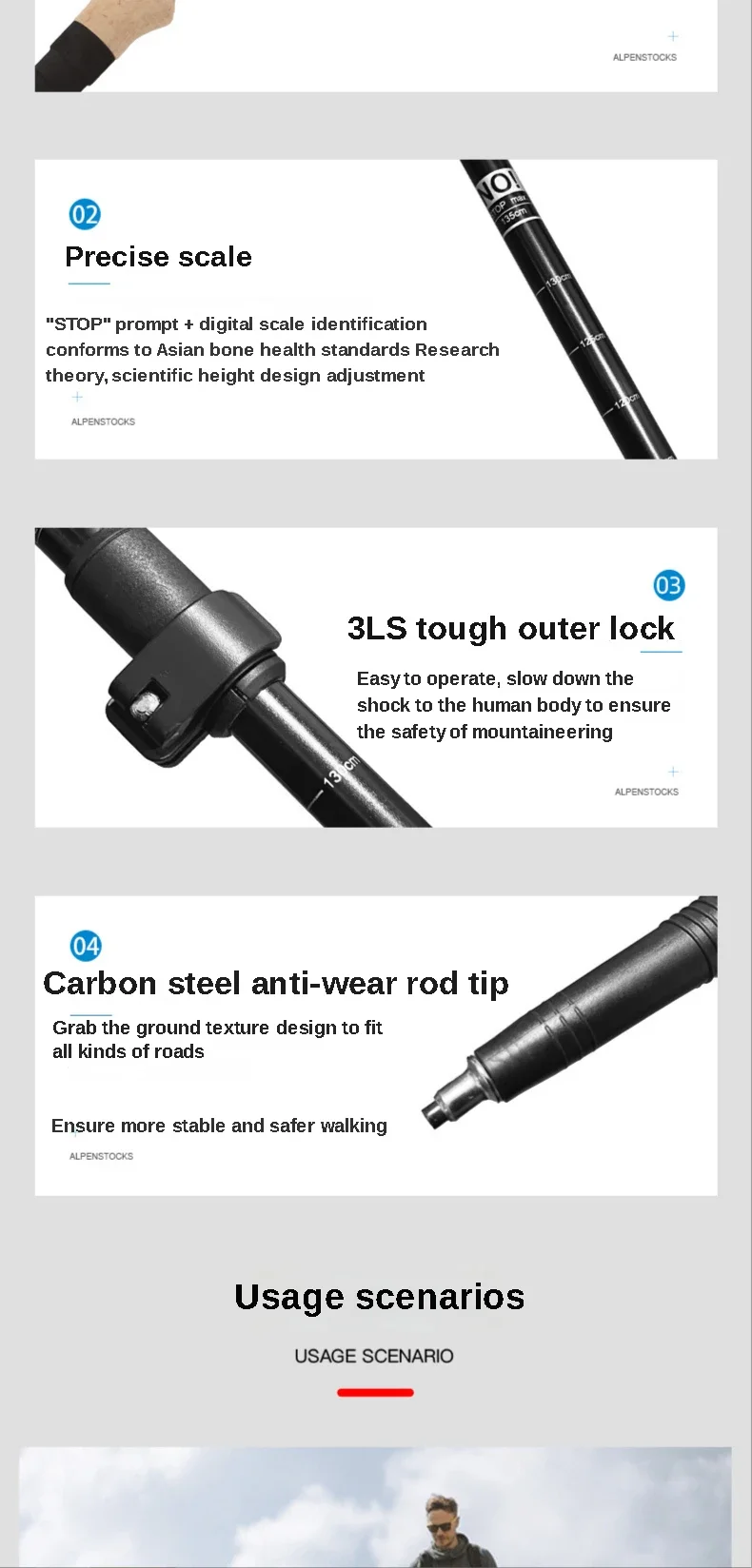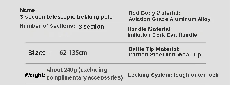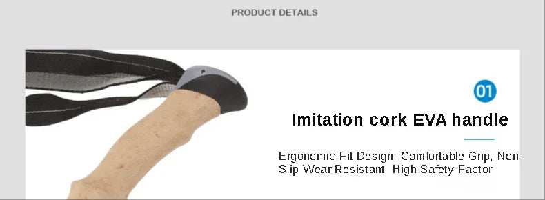 2 high-end hiking sticks, imitation cork handles, three-section telescopic ultra-light alloy sticks with external locks
