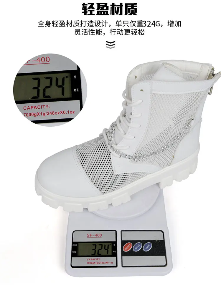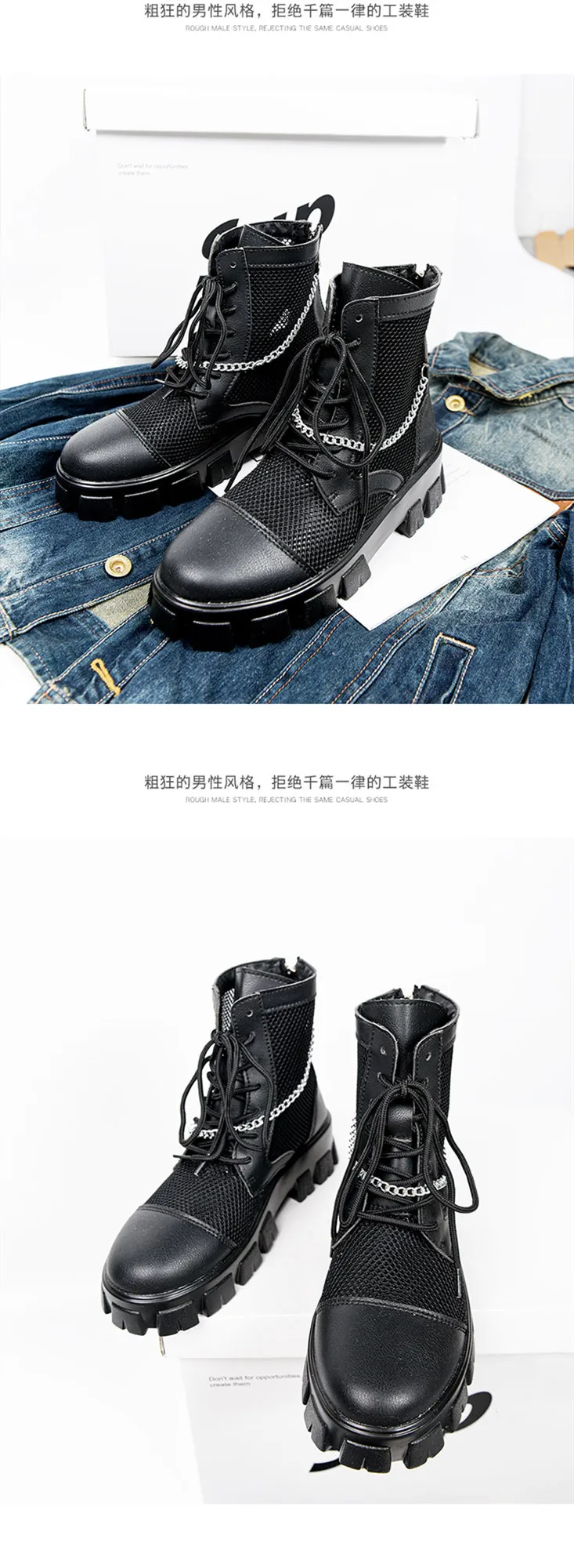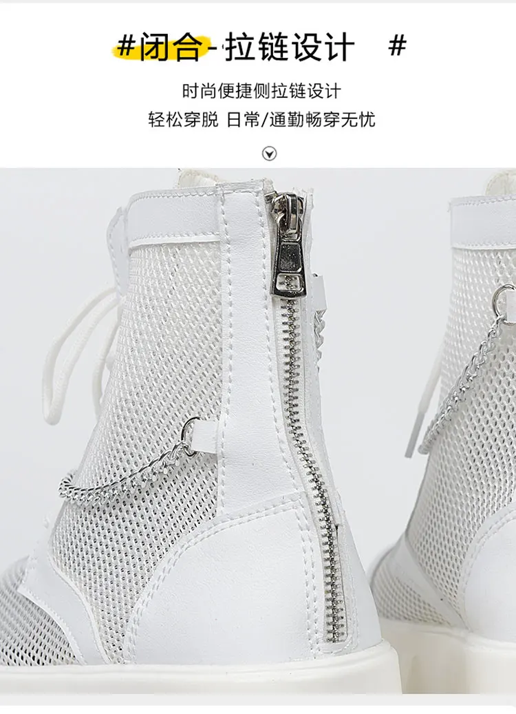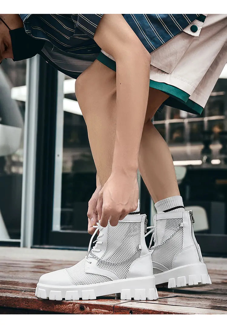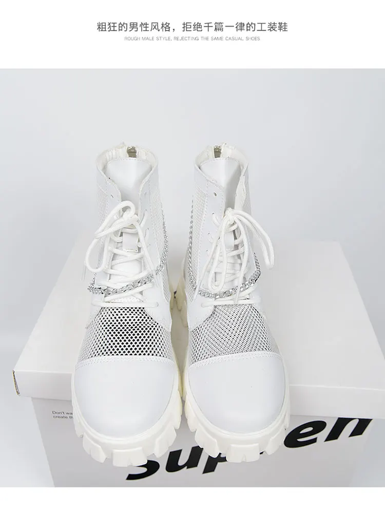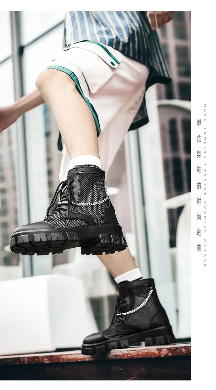 2024 New Summer Men's Boots Thick Bottom Mesh Surface Breathable Hollow Out Chain Short Boot Male Autumn Fashion Casual Shoes