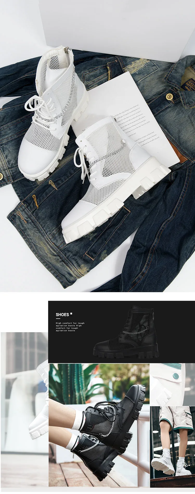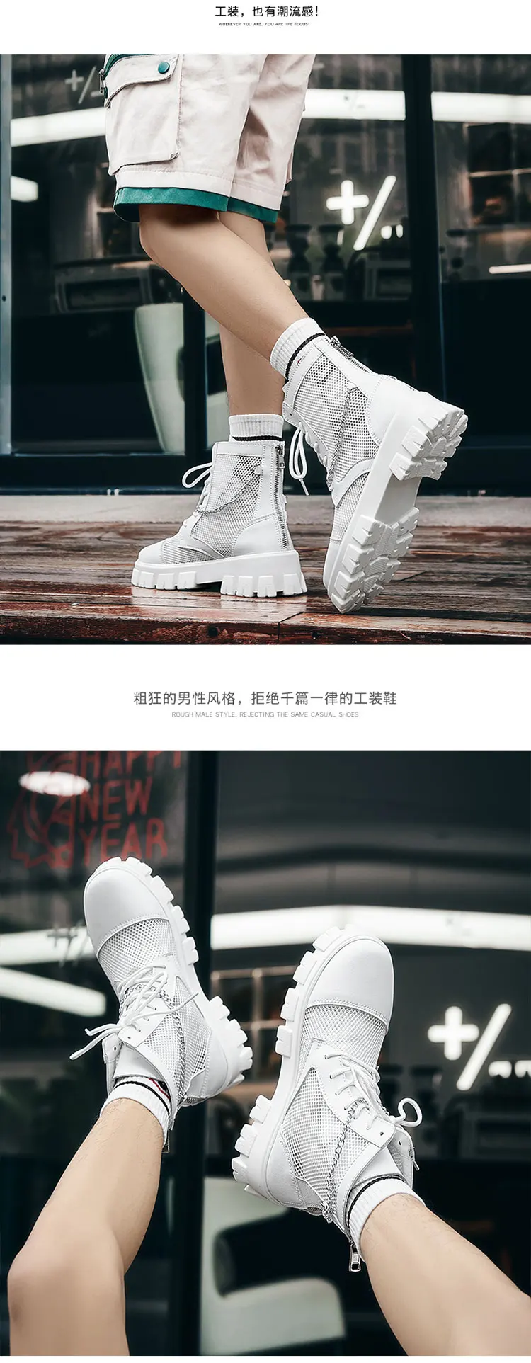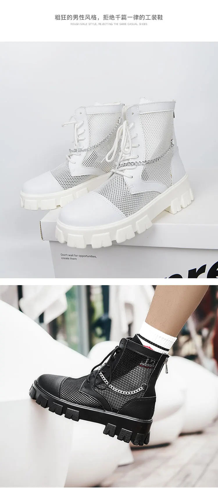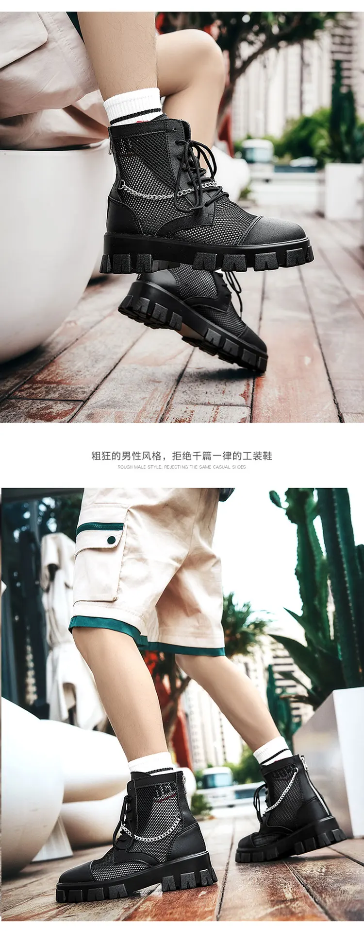 2024 New Summer Men's Boots Thick Bottom Mesh Surface Breathable Hollow Out Chain Short Boot Male Autumn Fashion Casual Shoes