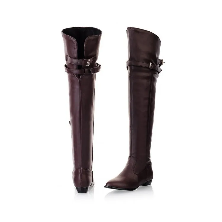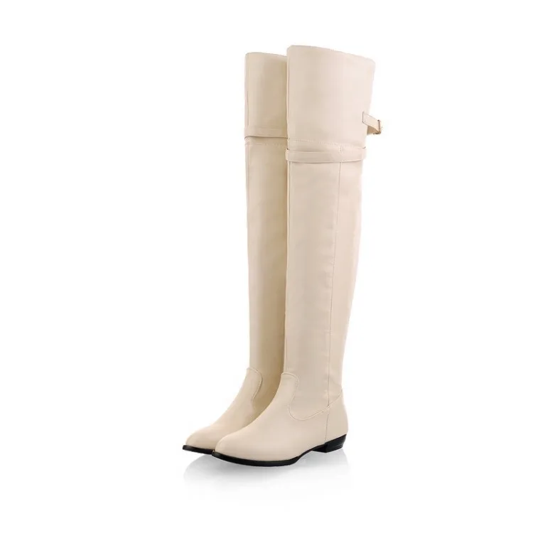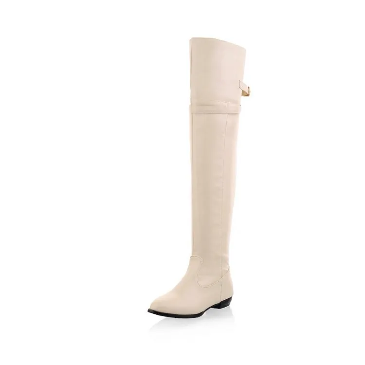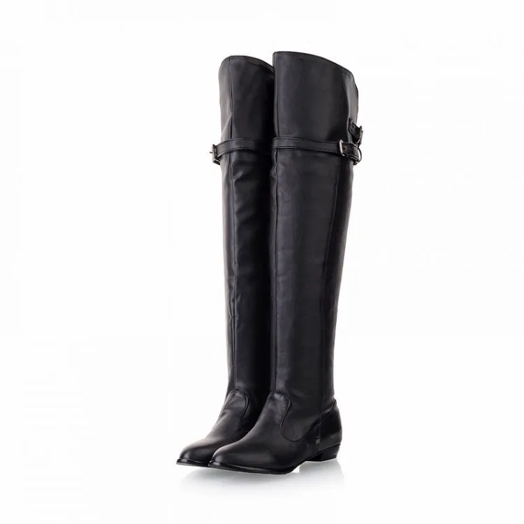 2024 Winter Elegant Women's Boot Over The Knee Street Style Knight 2.5CM New Belt Buckle Knee High Flat Knight Boots Women Shoes