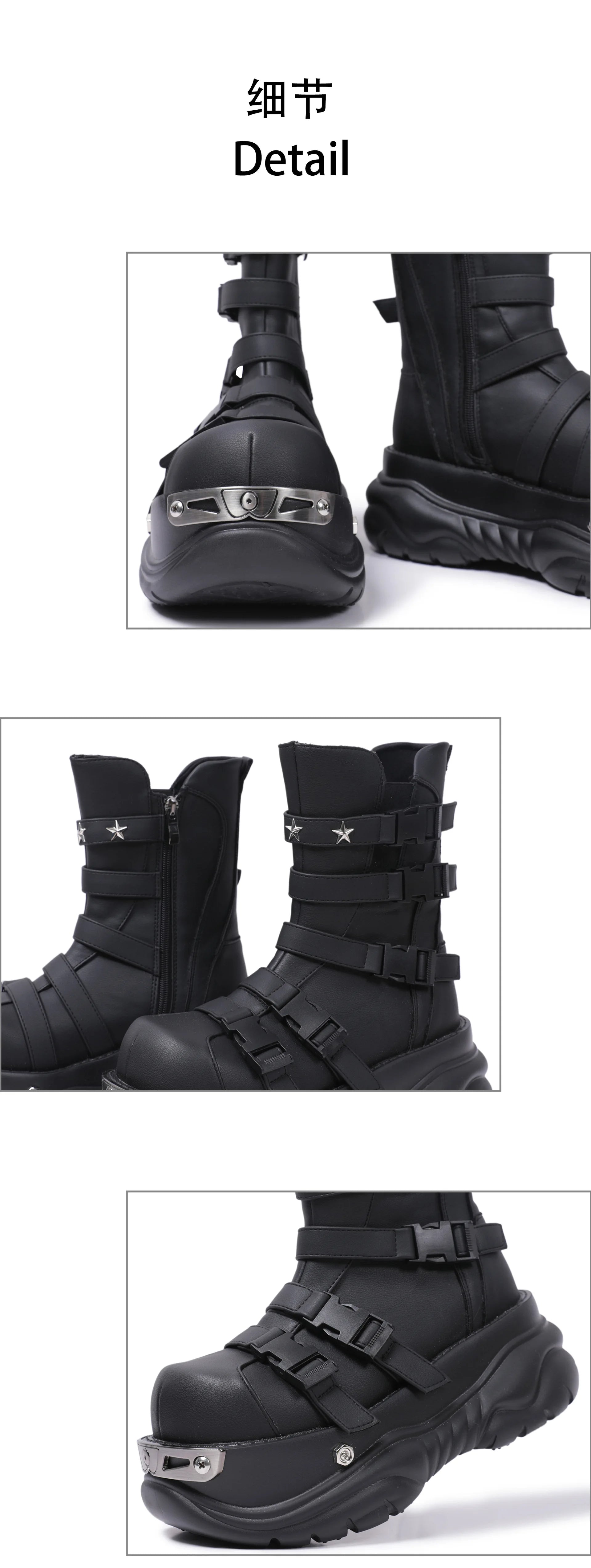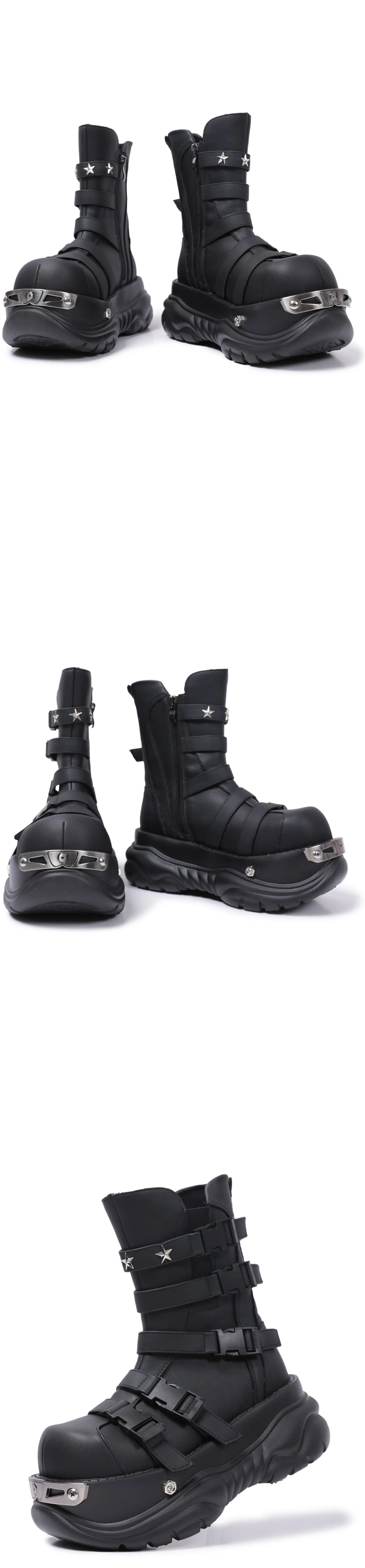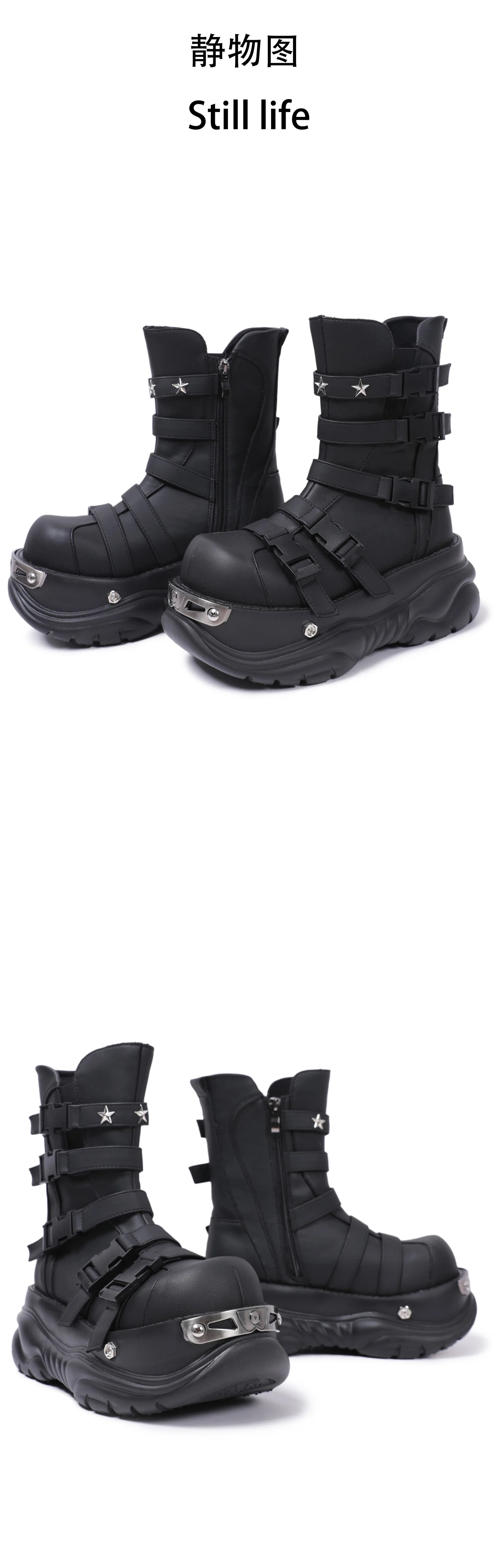 2024 Women's Niche Design Thick Bottom Metal Big Head Y2g Punk Hot Girl Small Height Increase Device Car Platform Boots