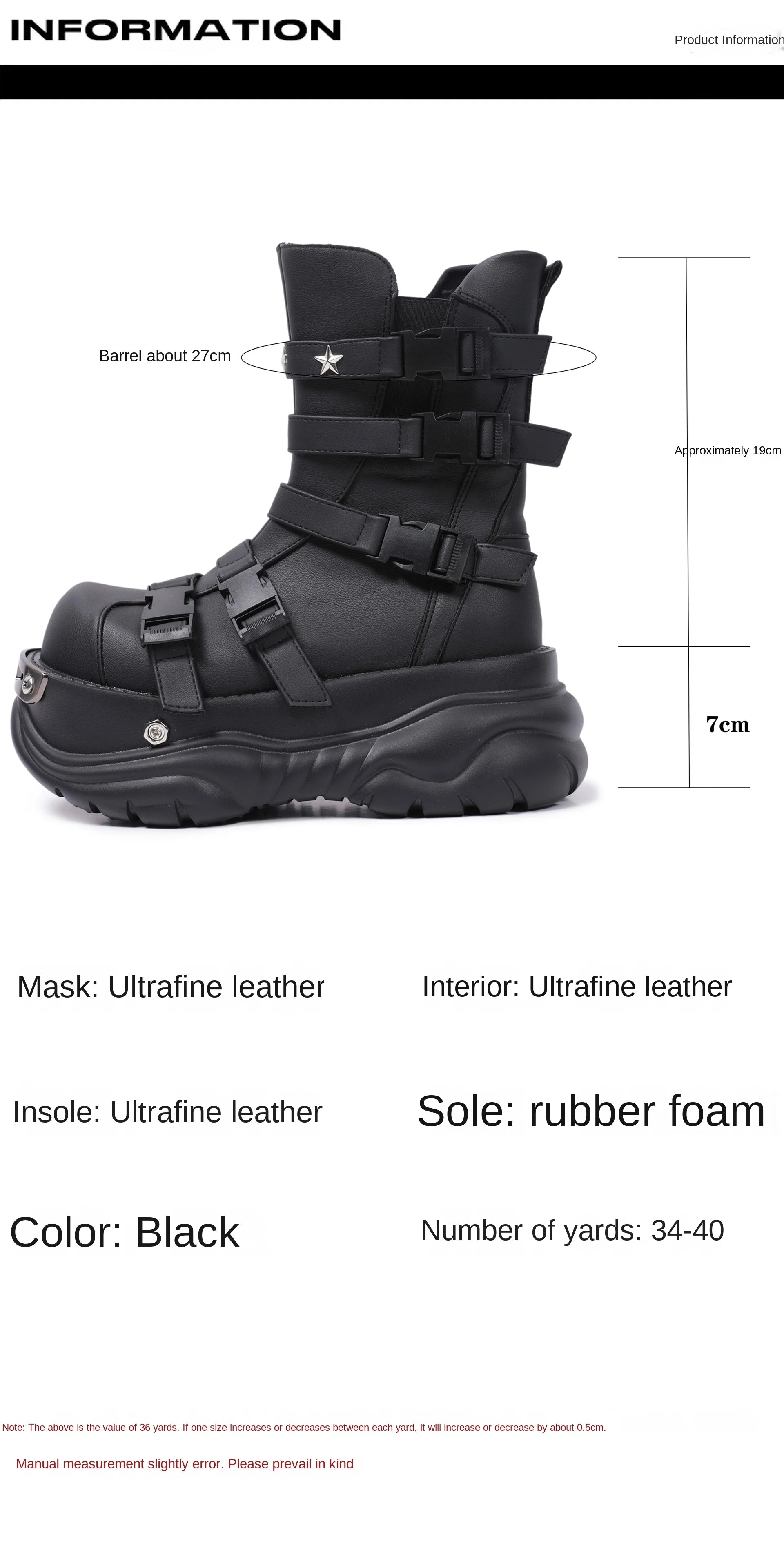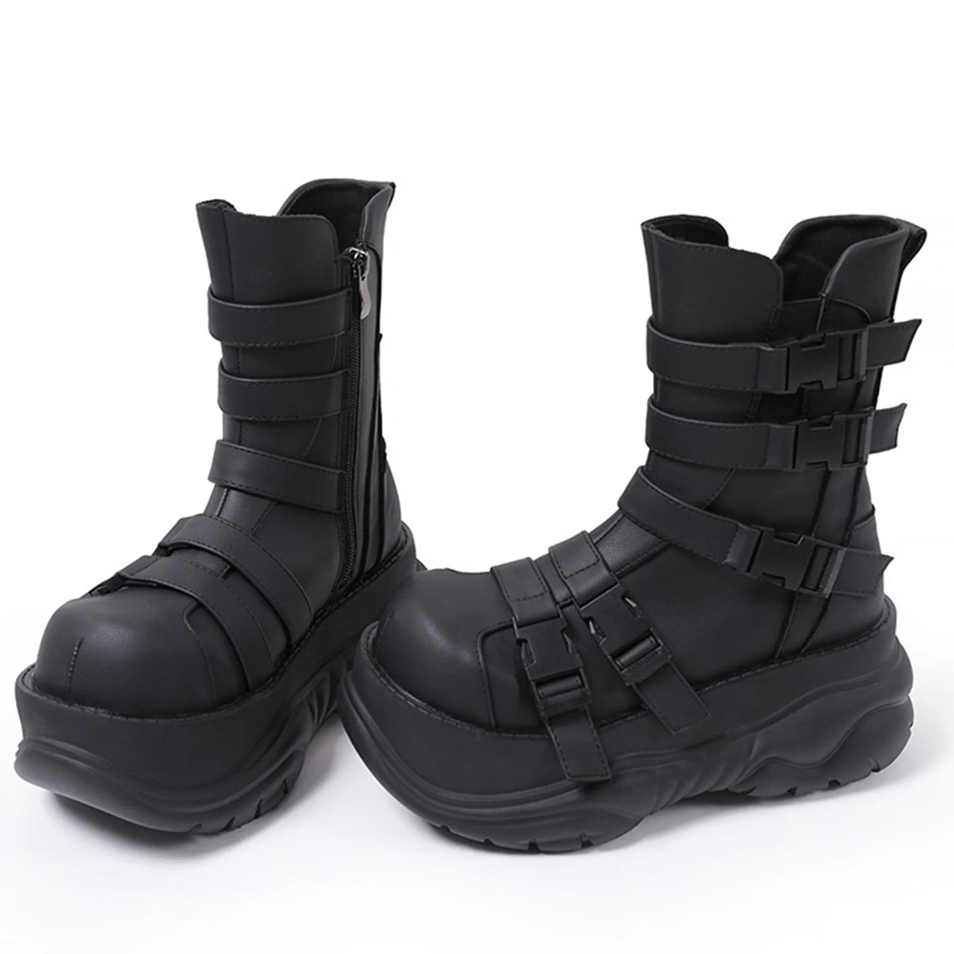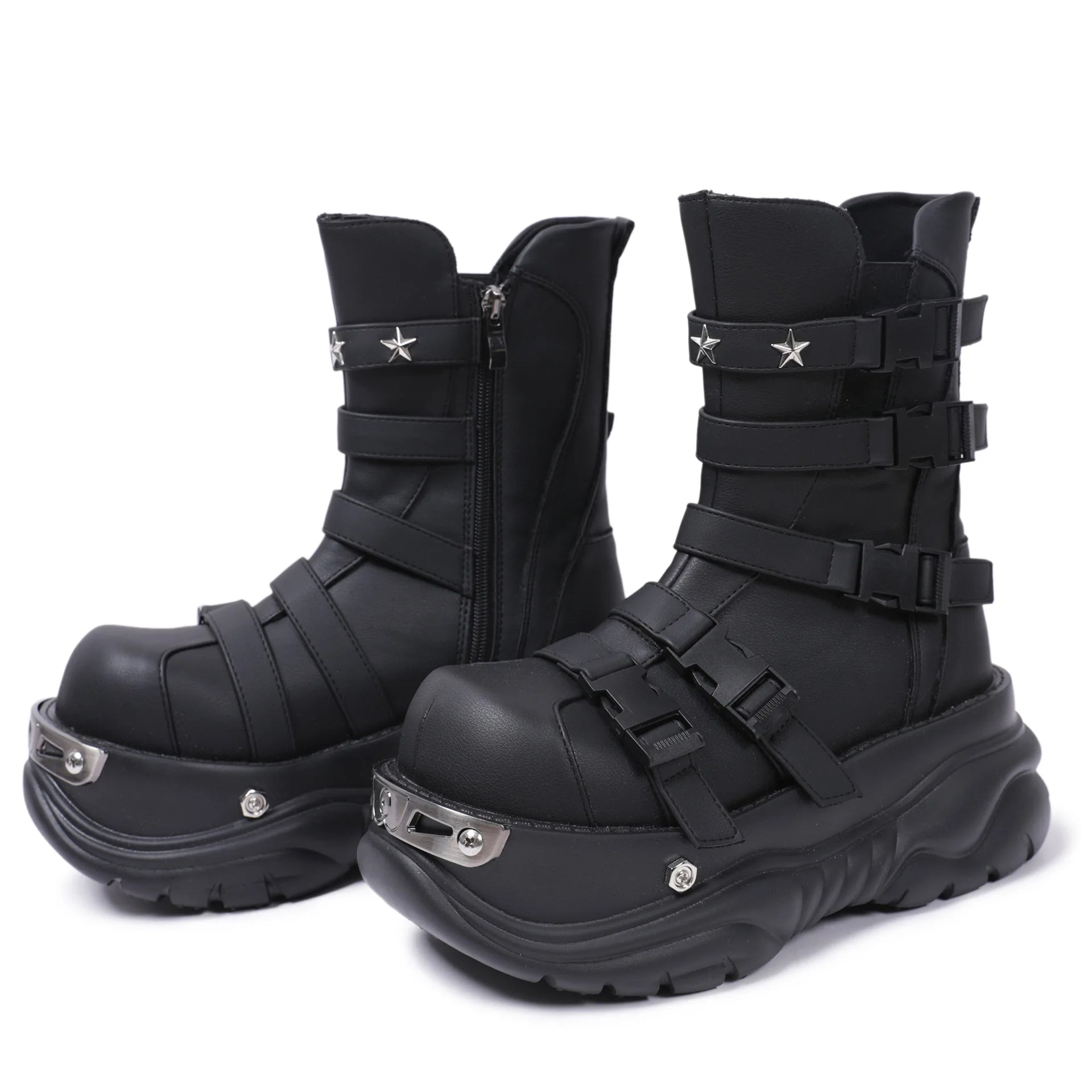 2024 Women's Niche Design Thick Bottom Metal Big Head Y2g Punk Hot Girl Small Height Increase Device Car Platform Boots