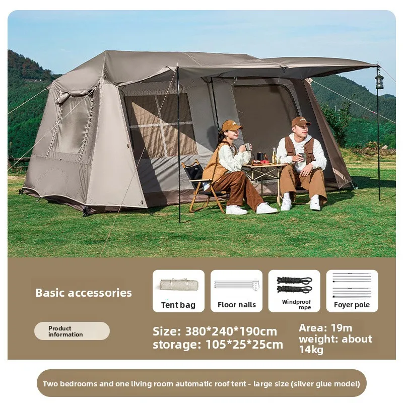 2025 Best-selling Outdoor Automatic Tent for 5-8 People 13㎡ Camping Hut Ridge Tent Space Large Gathering Tent Waterproof