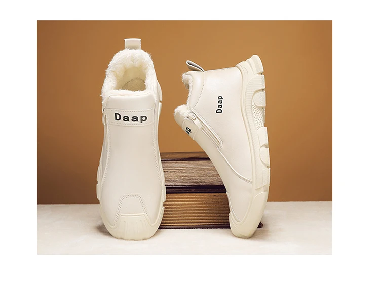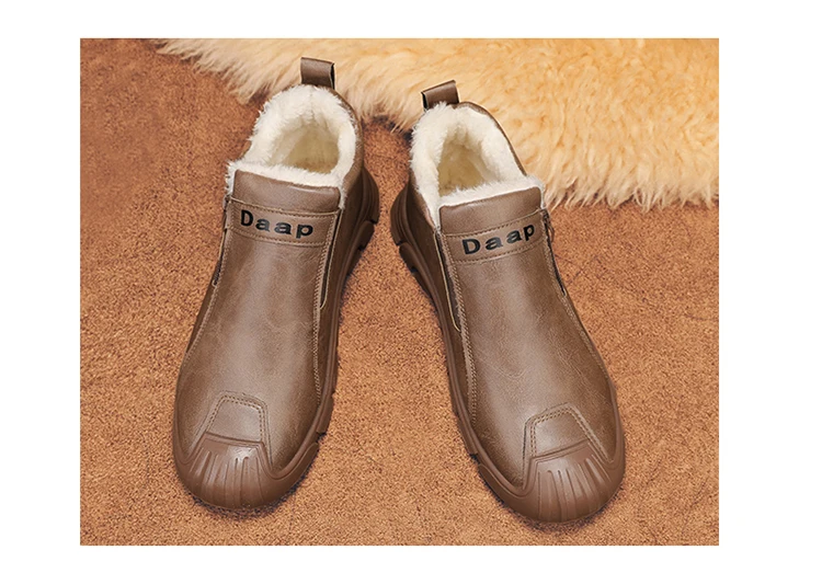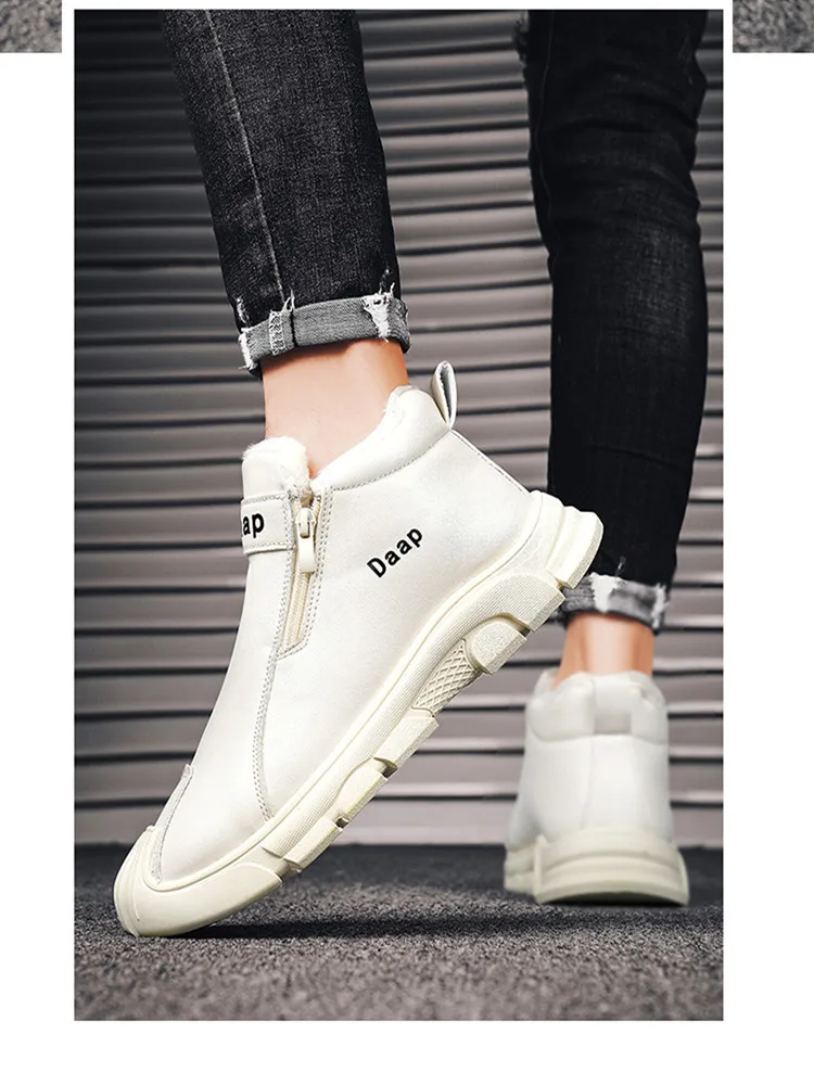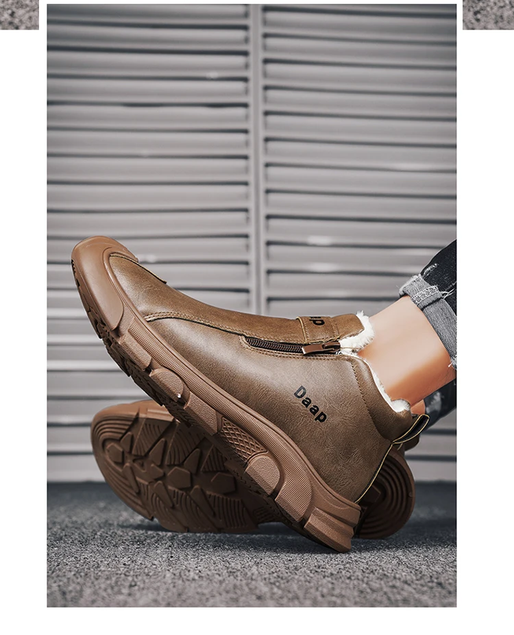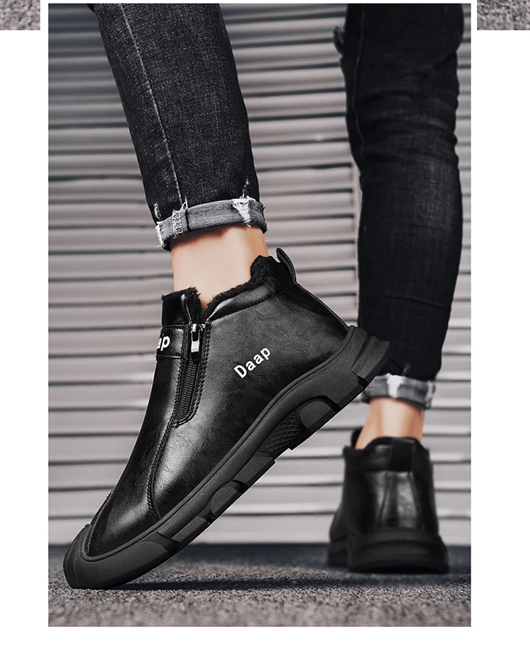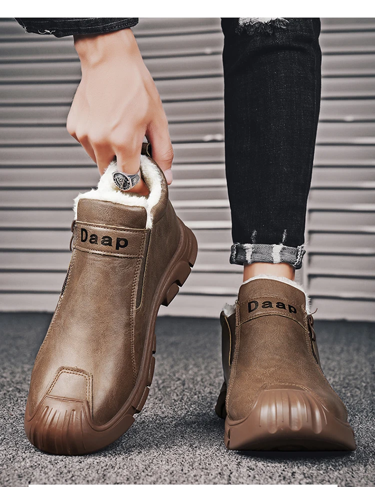 2025 High Top Men's Winter Shoes Comfortable Black Fluff Boots Men Warm Plush Leather Casual Sneakers Men Work Motorcycle Boots