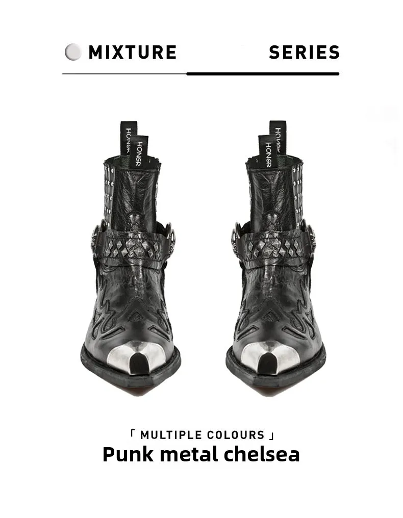 2025 New Men Popular Pointed Western Short Spanish Tide Brand Punk Rivet Leather Women Sneakers Chelsea Boots