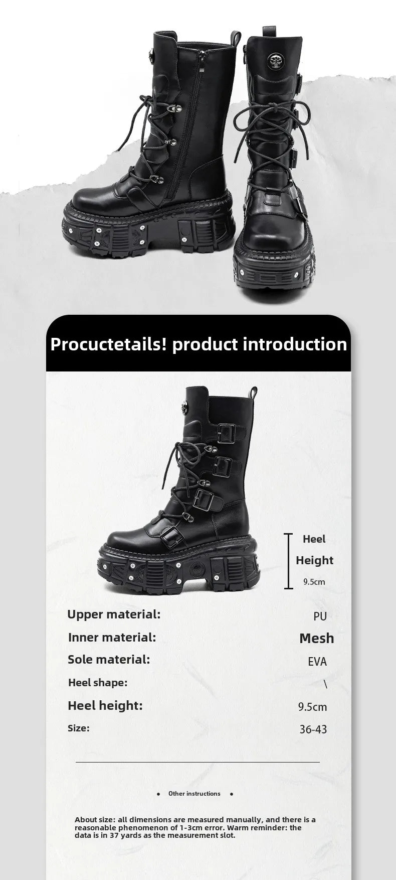 2025 Spring, Autumn and Autumn New Punk Style Women's Platform Spice Girls Metal Rock Motorcycle Fried Street Middle Boots Men