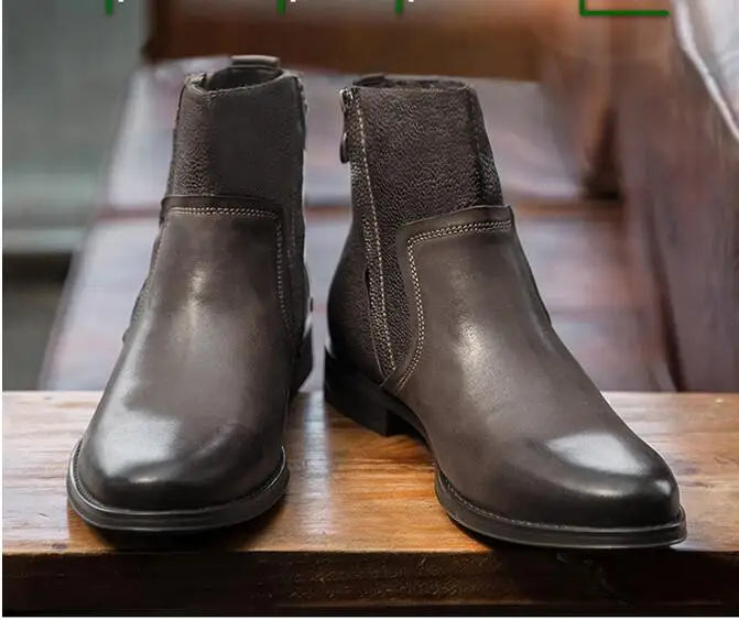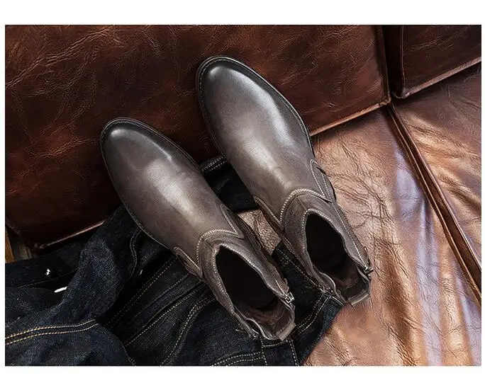 2026 Spring Autumn Ankle Boots Fashion Male Cow Genuine Leather Shoes Dual Zip Leisure Leather Boots Motorcycle Shoes Boys A049