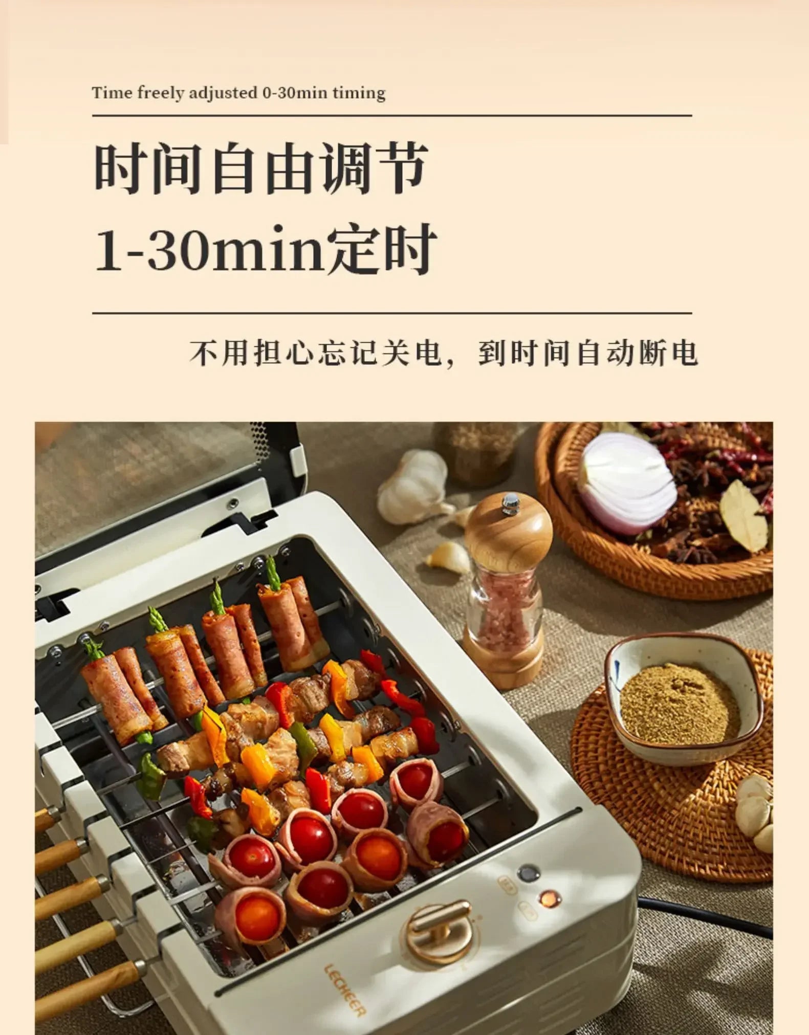 220V Le Kebab Barbecue Machine Smokeless Automatic Rotation Indoor Kebab Multi-function Skim Electric Barbecue Grill Smokeless A