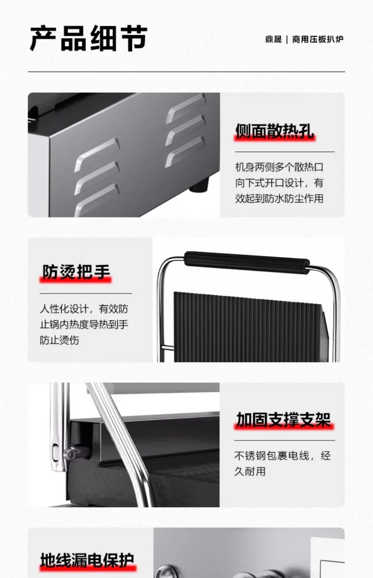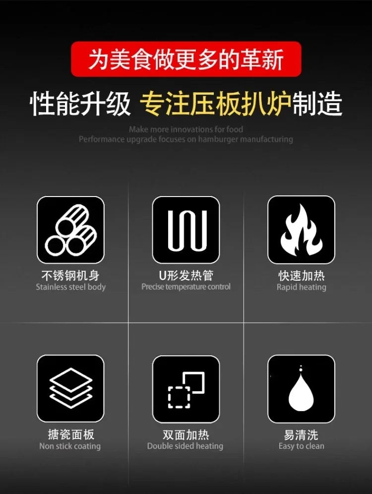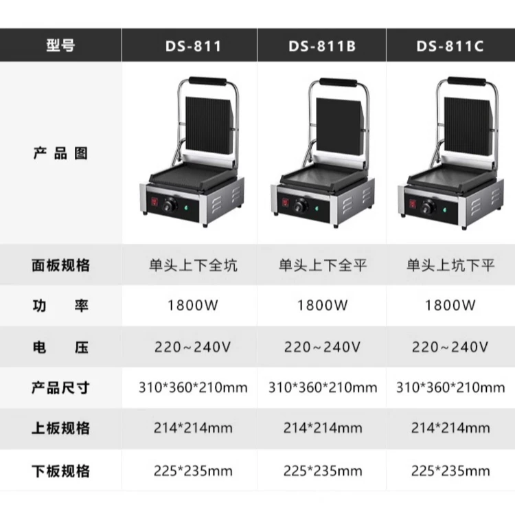 220V Professional Electric Panini Press Grill for Steak Sandwich with Full Groove Heating Plates Commercial Use AB