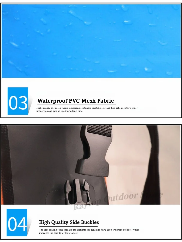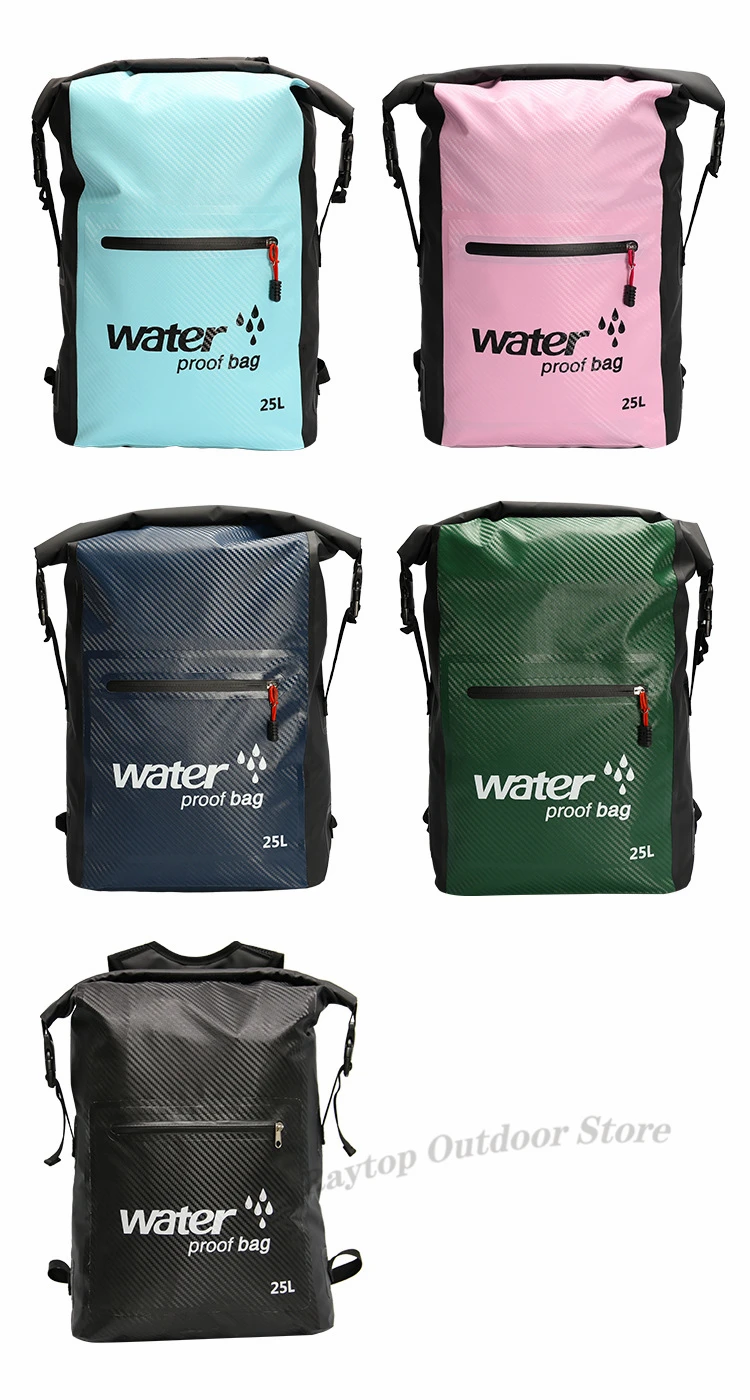 25L Foldable Hiking Bag Durable PVC Waterproof Rolltop Rucksack Backpack Abrasion-Resistant Shoulder Pack for Outdoor Adventures