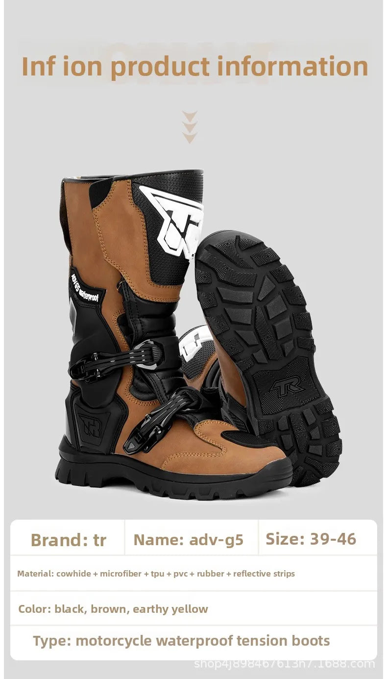 2PCS Waterproof Motorcycle Riding Boots Men Women Genuine Leather Adventure Touring Anti-Slip Protective All-Season CE Certified