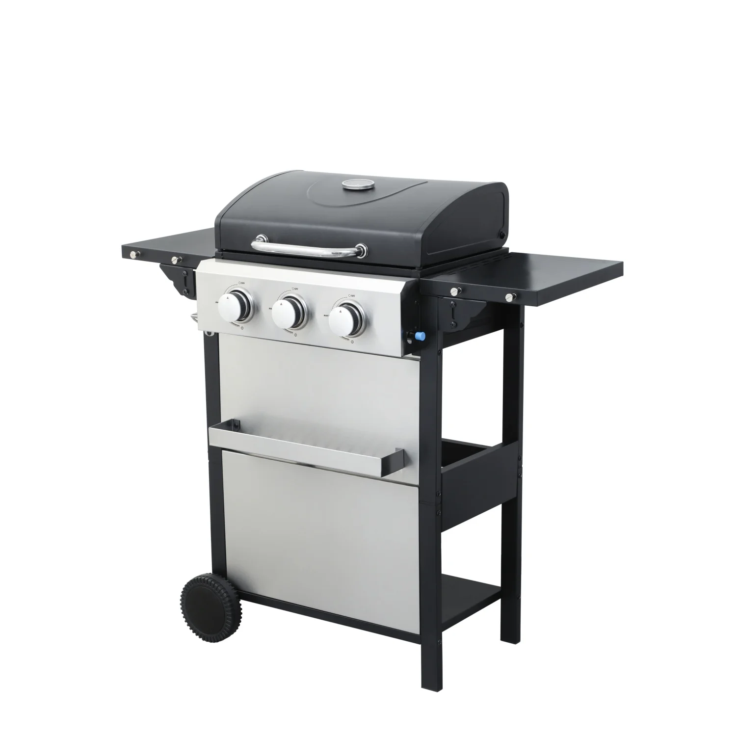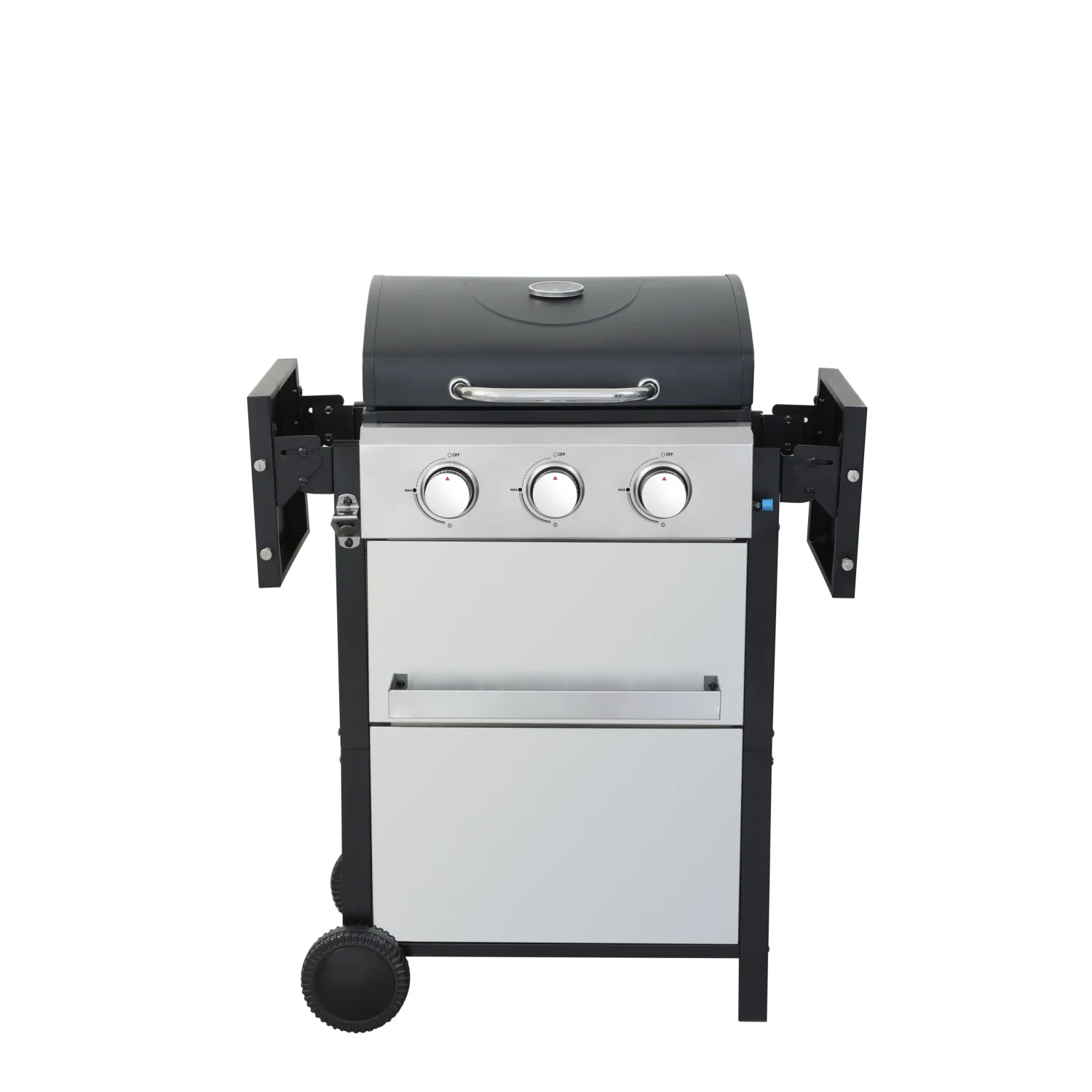 3-Burner Propane Gas BBQ Grill, 25650BTU Output With Wire Enamel Cooking Grids For Outdoor Barbecue, Foldable Side Table, Stainl