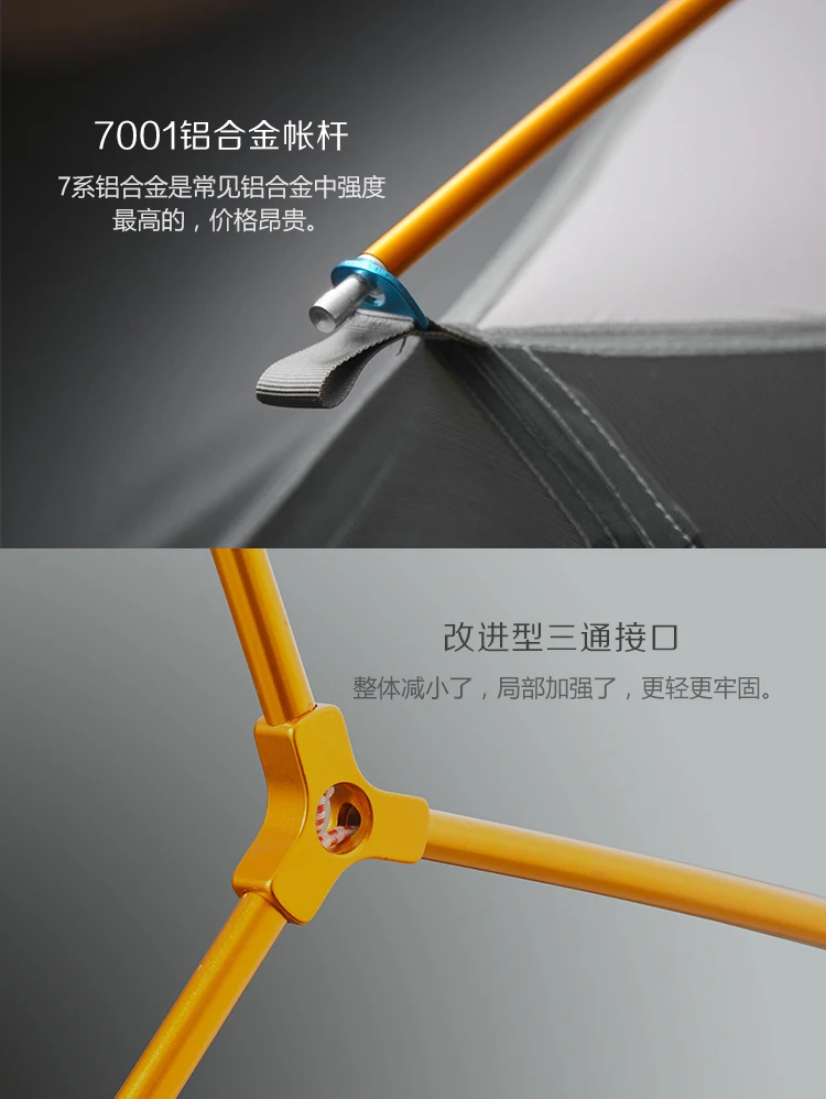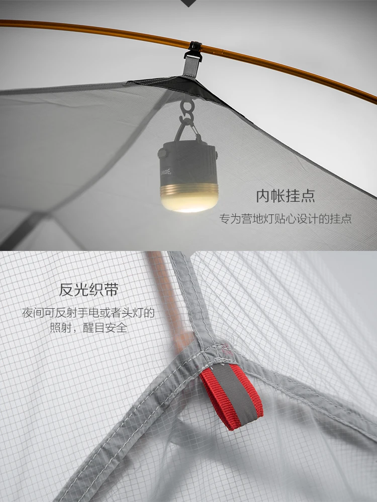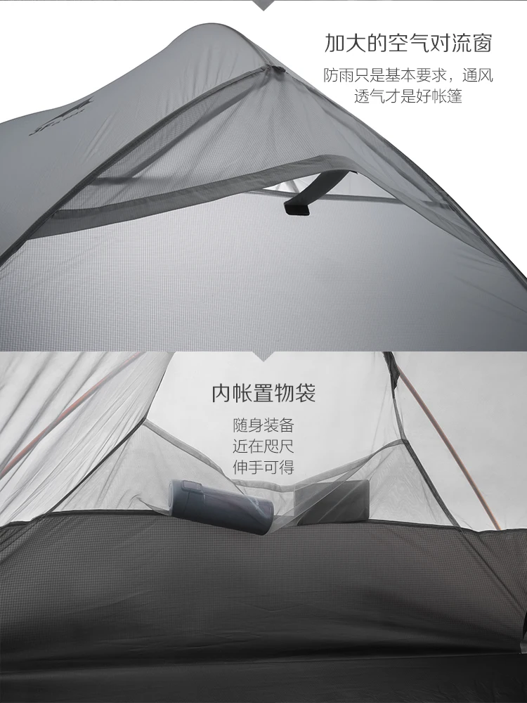 Outside the tent: 15D nylon coated silicone fabric 549G (waterproof index 5000MM)