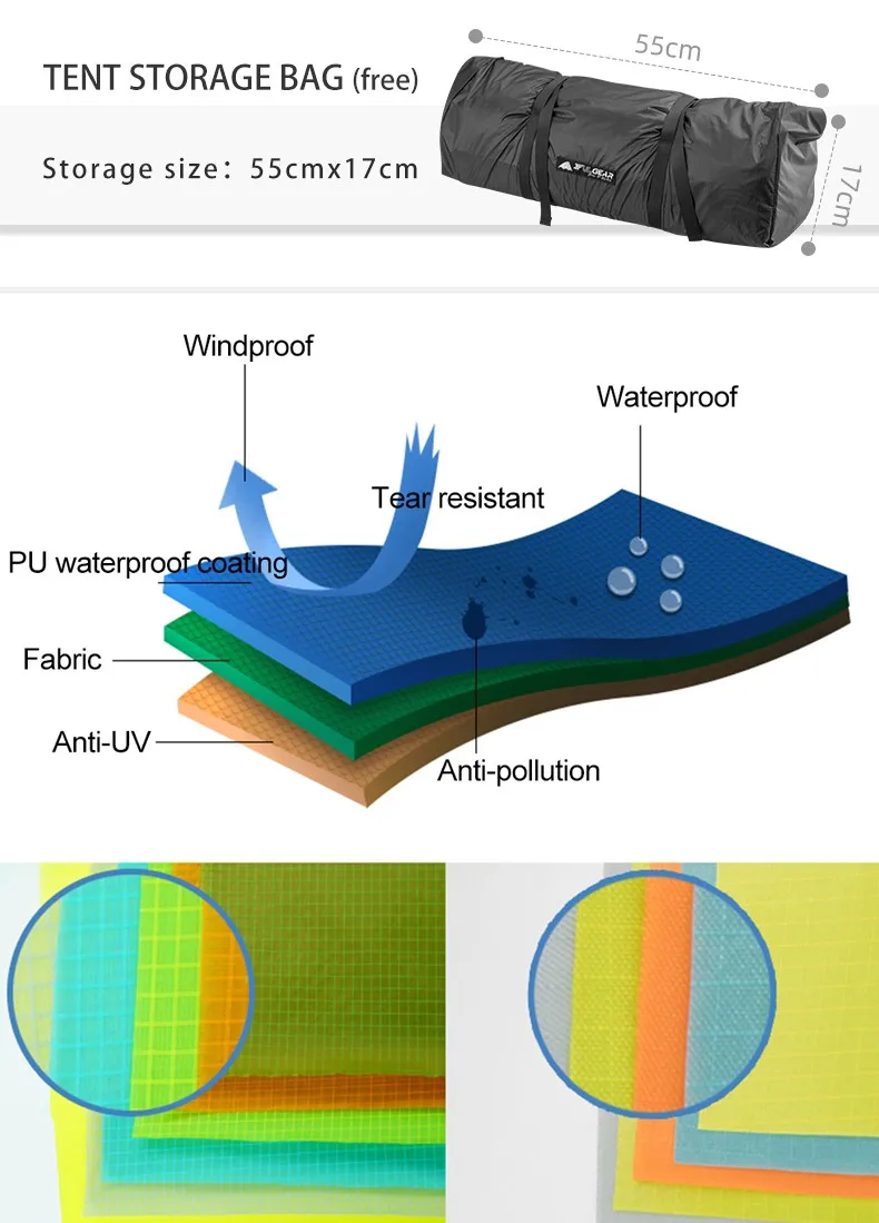 Type:15D 3 Season/15D 4 Season/210T 3 Season/210T 4 Season