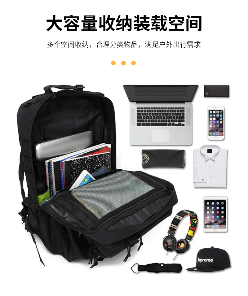 This 45L large-capacity hiking backpack is designed for outdoor enthusiasts. Made from high-strength 900D Oxford fabric, it offers excellent abrasion resistance and water-resistant properties. The lightweight design features a MOLLE webbing system for flexible expansion and multiple compartments for organized storage. The breathable andStress relieving backpack system ensures comfort during extended wear, making it ideal for hiking, climbing, cycling, travel, and more.