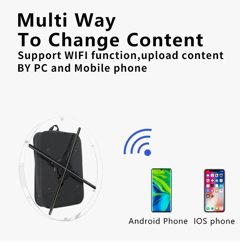 Name: 52CM Portable Backpack Hologram Projector WIFI 576Pcs LED 3D led Holographic Fan for Christmas Event Shopping Mall Party