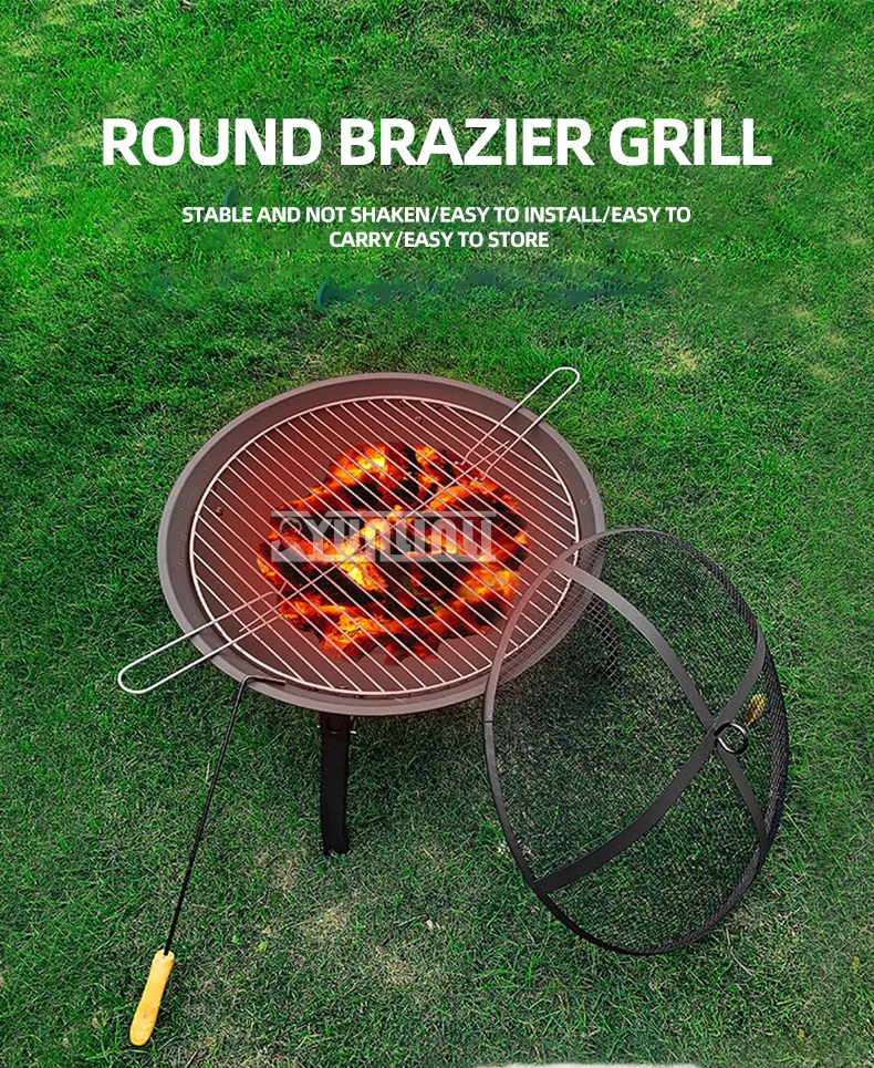55cm Folding Portable Barbecue Charcoal Grill Outdoor Round Brazier Tea Heating Stove BBQ Desk Tabletop Carbon Bonfire