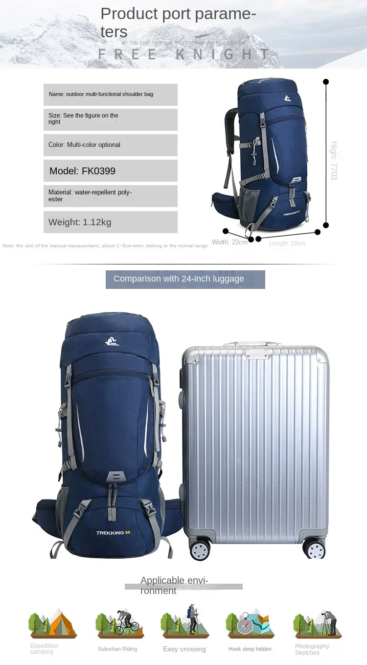 60L Large Hiking Mountaineering Backpack Climbing Hiking Backpack Camping Backpack Sport Outdoor Rucksack Bag For MEN