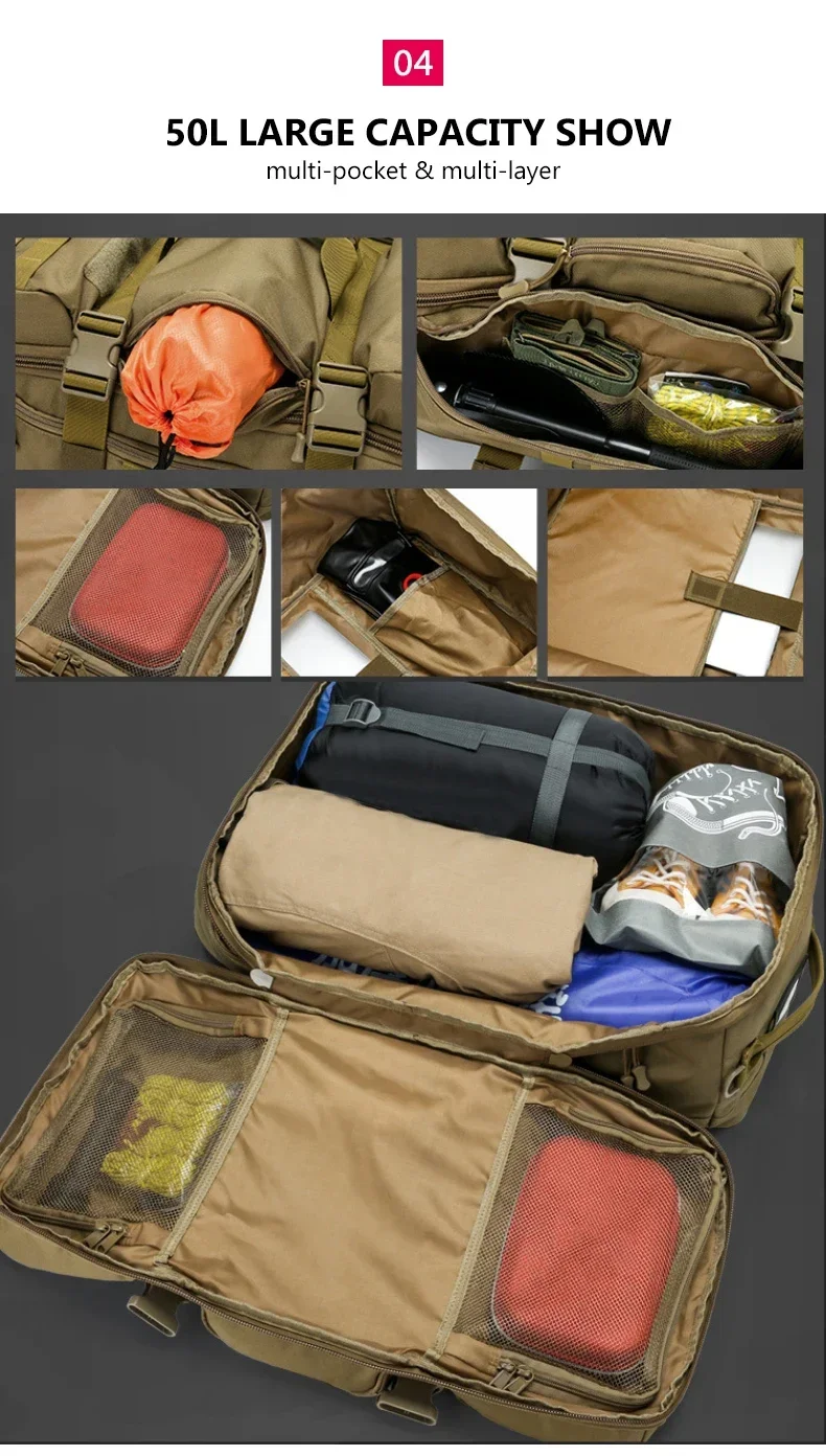 65L Tactical Hunting Backpack Outdoor Shoulder Bag Waterproof Nylon Backpack Trekking Climbing Large Capacity Travel Backpack