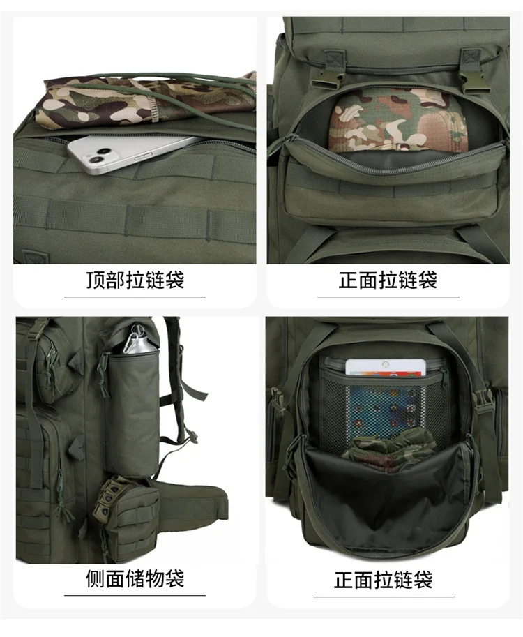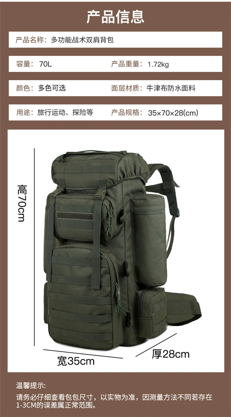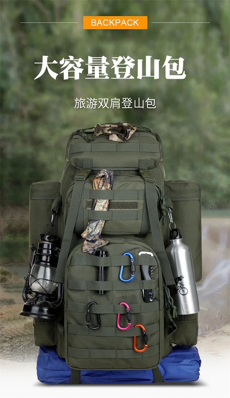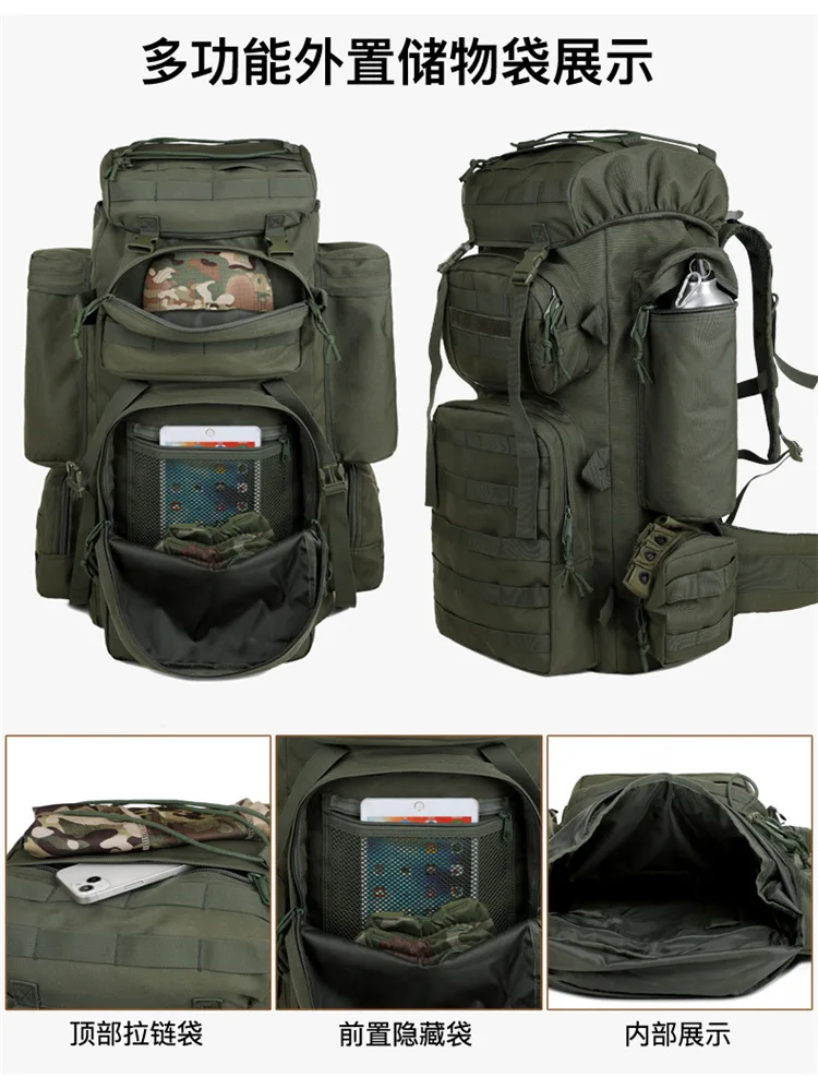 70L Large Capacity Tactical Backpack,Wear-Resistant Rainproof Oxford Cloth,Multifunctional Outdoor Camping Hiking Climb Bag,B437