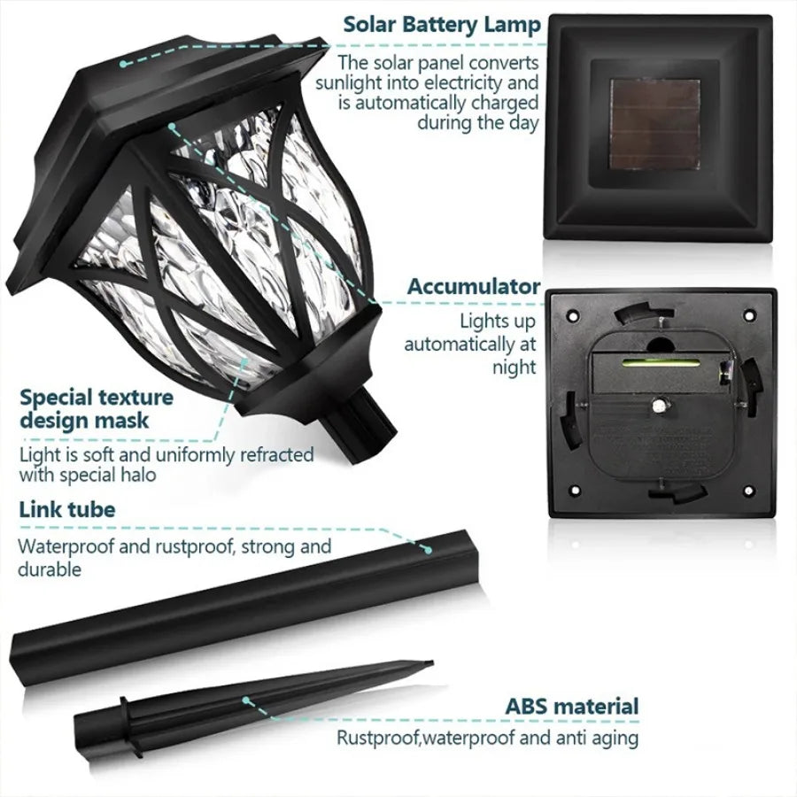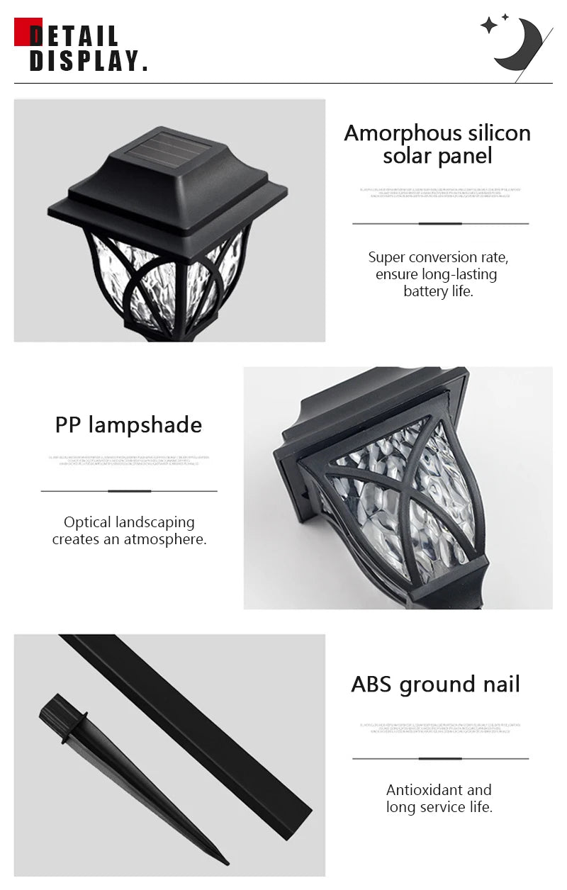 ● Suitable for paths, lanes, sidewalks, gardens, courtyards, lawns, landscapes, sidewalks, terraces, walls, backyards, or any outdoor nighttime lighting location. You can install it anywhere you want. But please make sure it can absorb enough sunlight during the day so that it can shine at night.