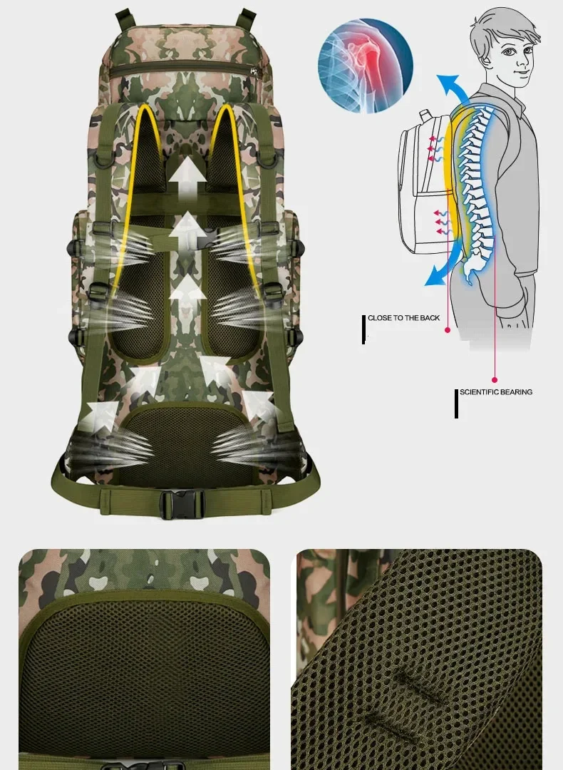 90L Travel Bag Camping Backpack Tactical Hiking Climbing Bags Mountaineering Large Sport Knapsack Outdoor Men Luggage Rucksack