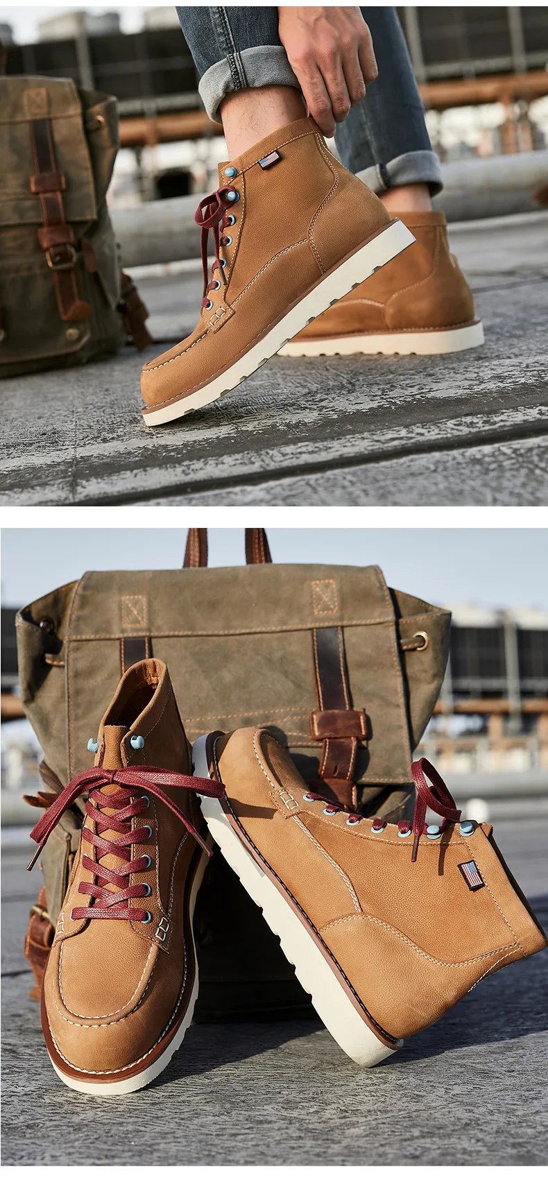 A066 Size 39-44 New Casual Men Fashion Reto Tooling Boots Lace Up Leisure Vintage Shoes Crazy Brown Man Footwear 2025