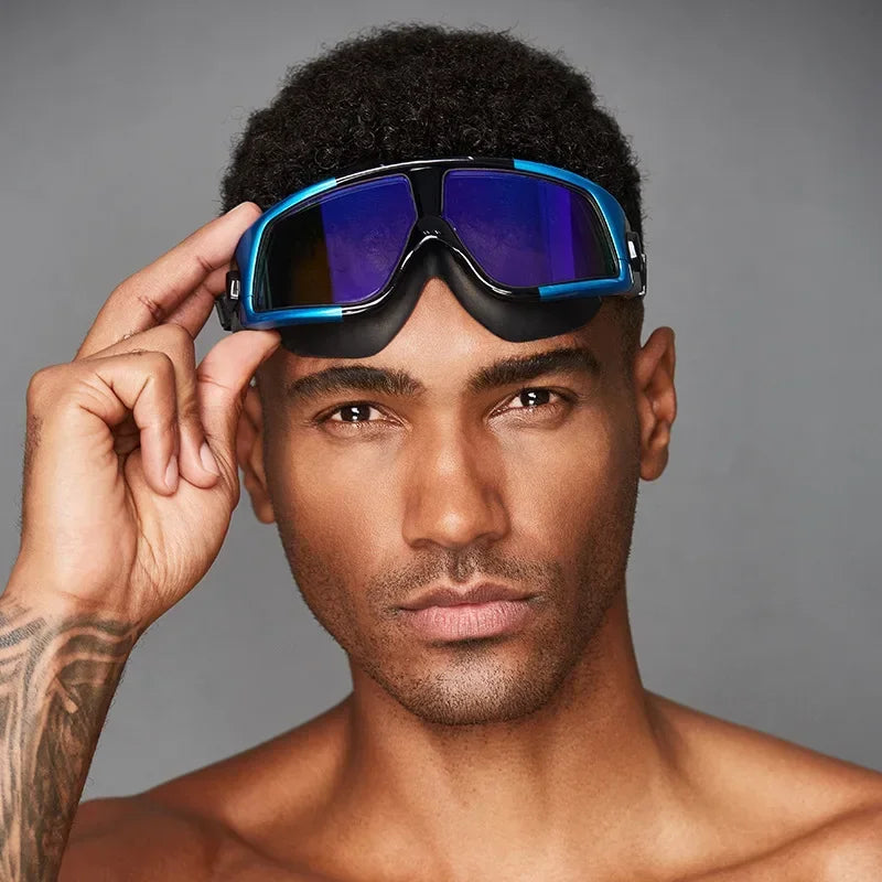 Adjustable Swimming Glasses Women and Men Myopia Waterproof Anti-Fog Goggles Set Acetate Blue Polycarbonate