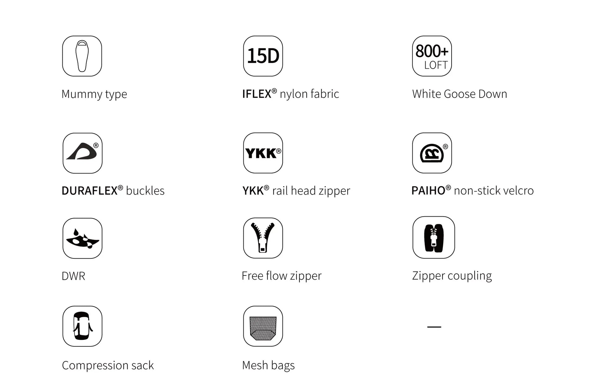 AEGIS G series is a relaxed mummy shape provides plenty of room while you sleep. It has excellent thermal weight ratio combines the best features of a goose down perfect blend of insulated warmth, low weight and squash-down compressibility. Fully lining structure and baffle design reduce cold spots and retain loft and still features our self-sealing foot vent for comfort.