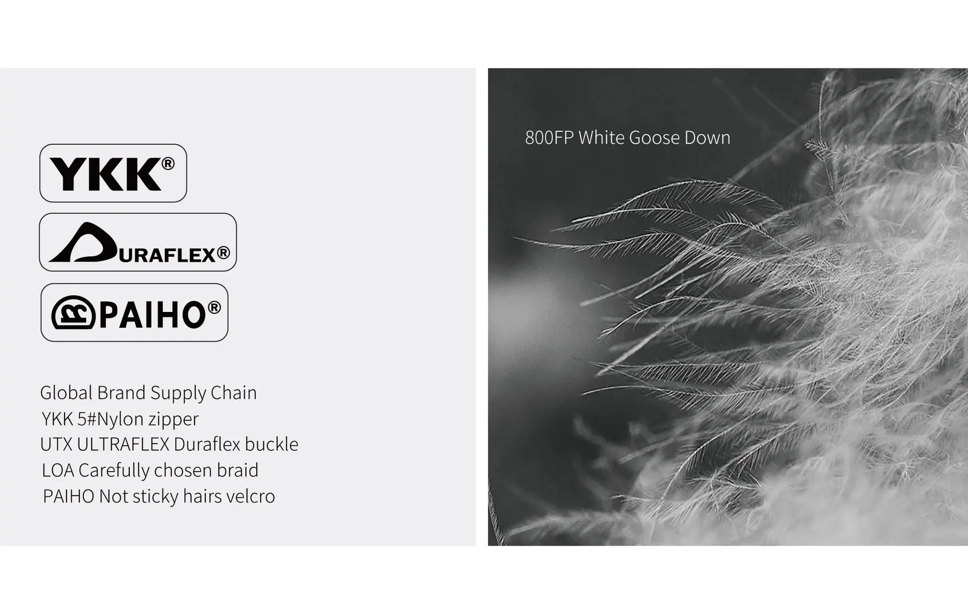 Technical Specs: IFlex®15D DWR Nylon Fabrics | 800 Fill Goose Down | IFlex 15D Touch soft Nylon lining Fabrics | Anti-Snag Zipper Tracks| Draft baffle