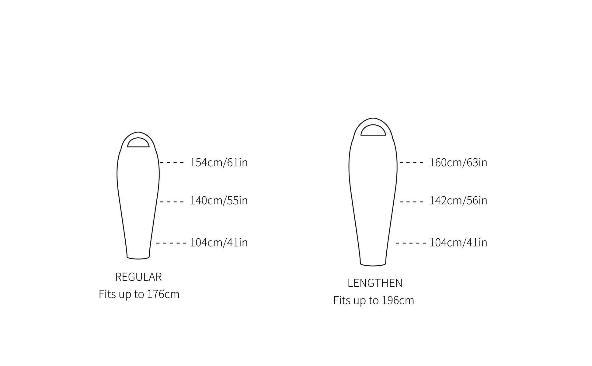 G-lengthen: Specs: Fits 190cm | Shoulder girth 160cm | Hip girth 142cm | Footbox girth 104cm | Insulation 800 Fill Power Goose Down| Storage bag and stuff sack included.