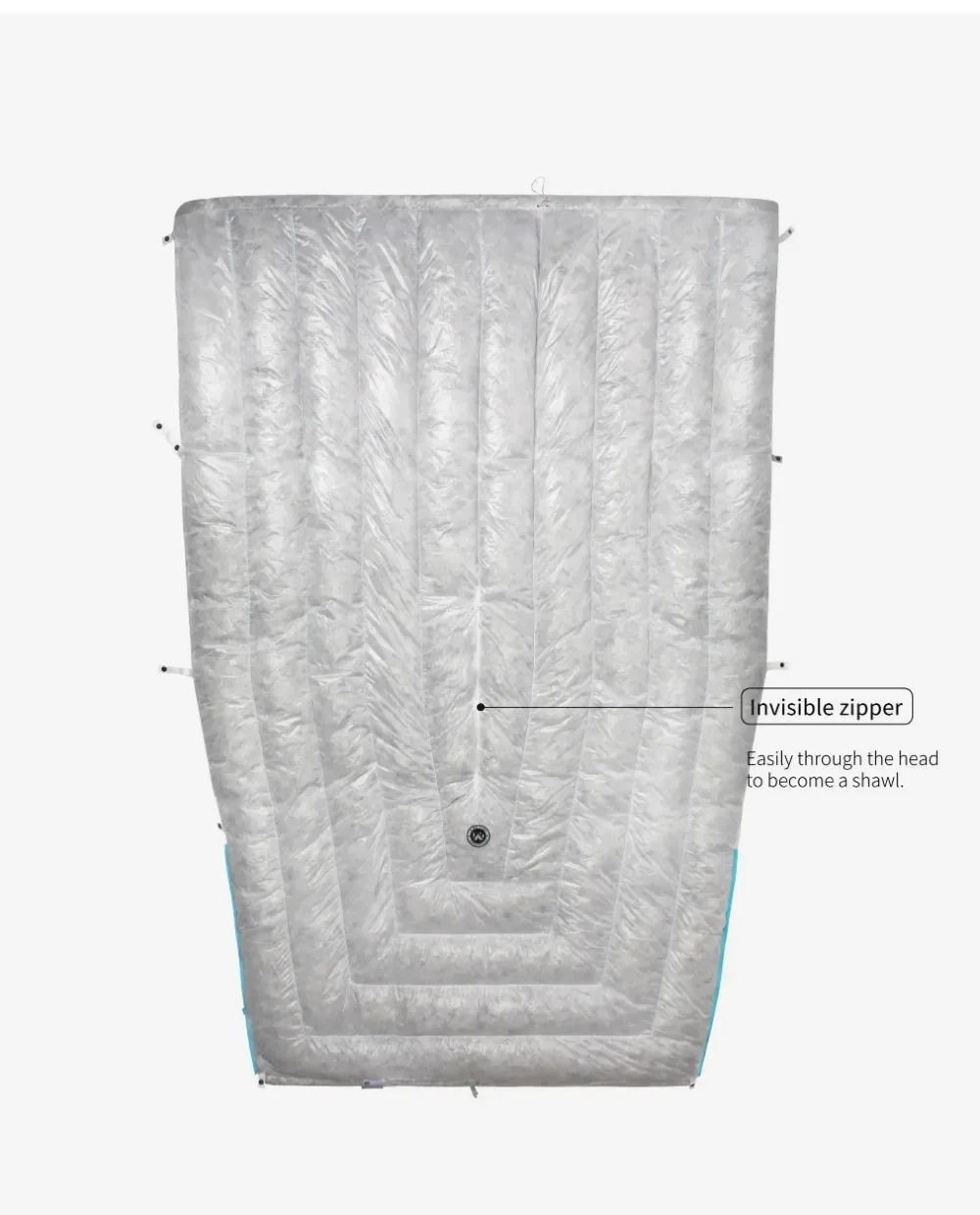 Invisible zipper in the middle of the sleeping bag, Head through the zipper can be turned into a wide shawl;