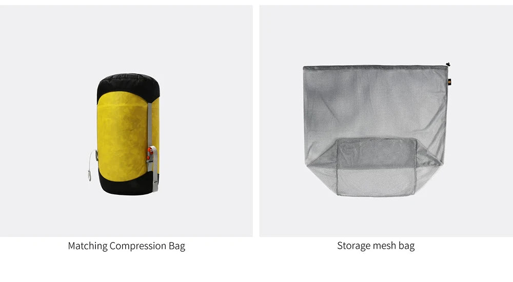 iFlex®10D 500T DWR Nylon Ripstop Fabrics | 800FP Ultra Dry Down | Fill weight:550g | Sleeping bag weight:780g | Total weight:835g | Fits up to186cm | Width girth 135cm | Compression sack weight:55g | Package size:18cm X 30cm.