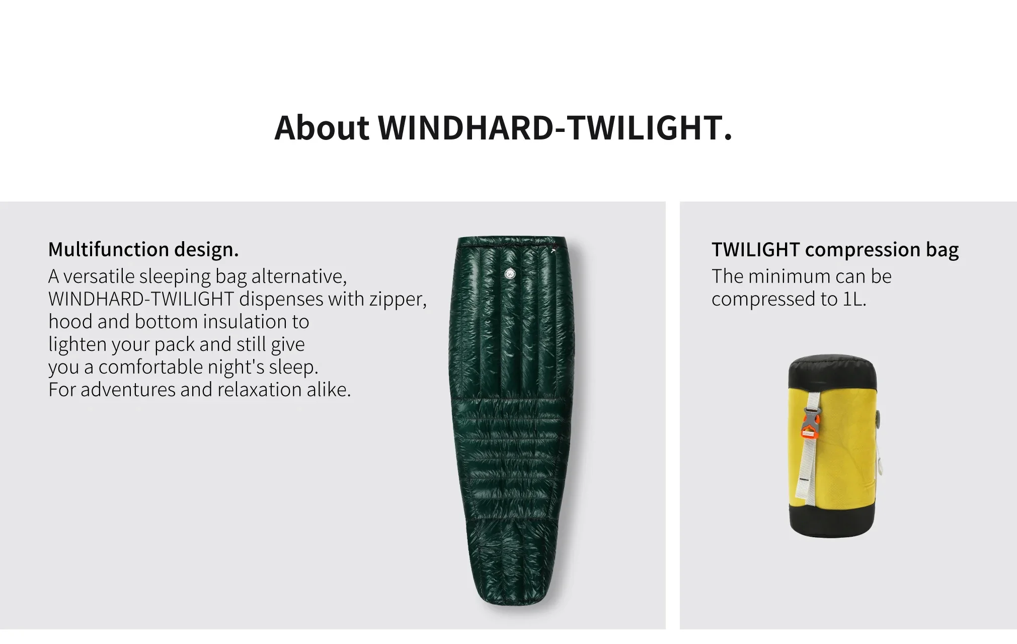 Twilight-II Lengthen: Fill weight:510g | Sleeping bag weight:704g | Package size:18cmx30cm.