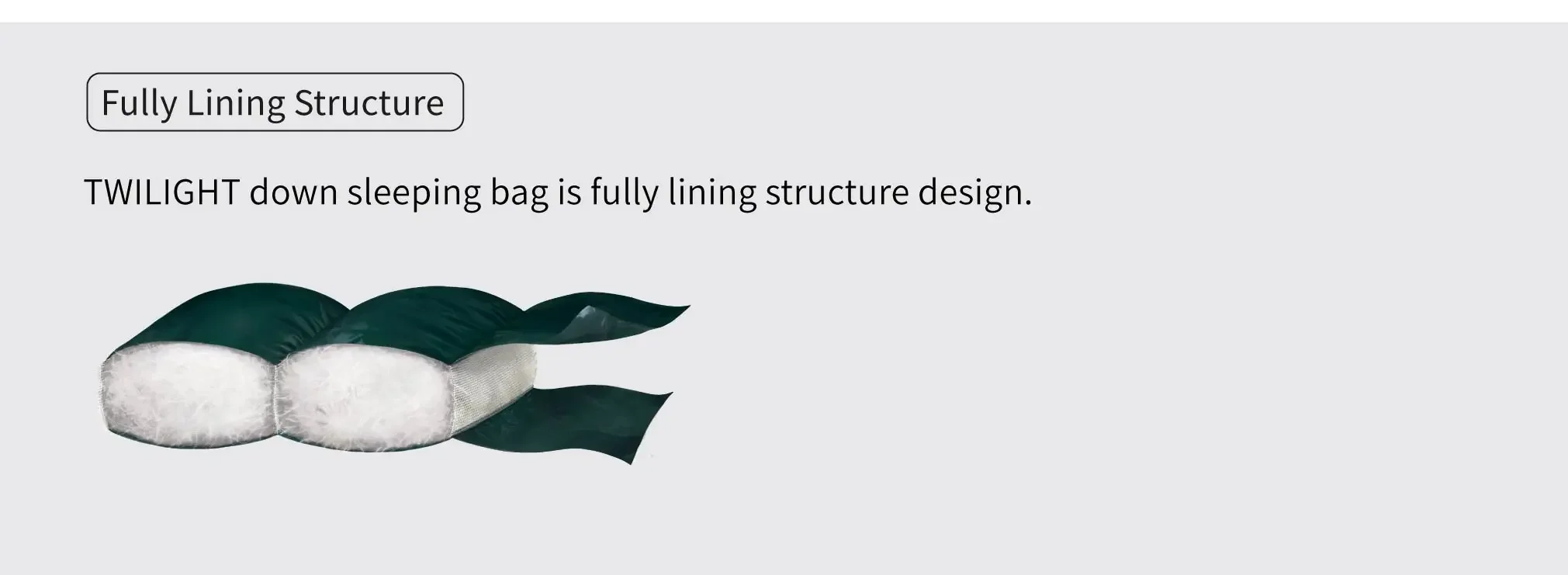 Twilight Lengthen: Fill weight:400g | Sleeping bag weight:584g | Package size:15cmx27cm.