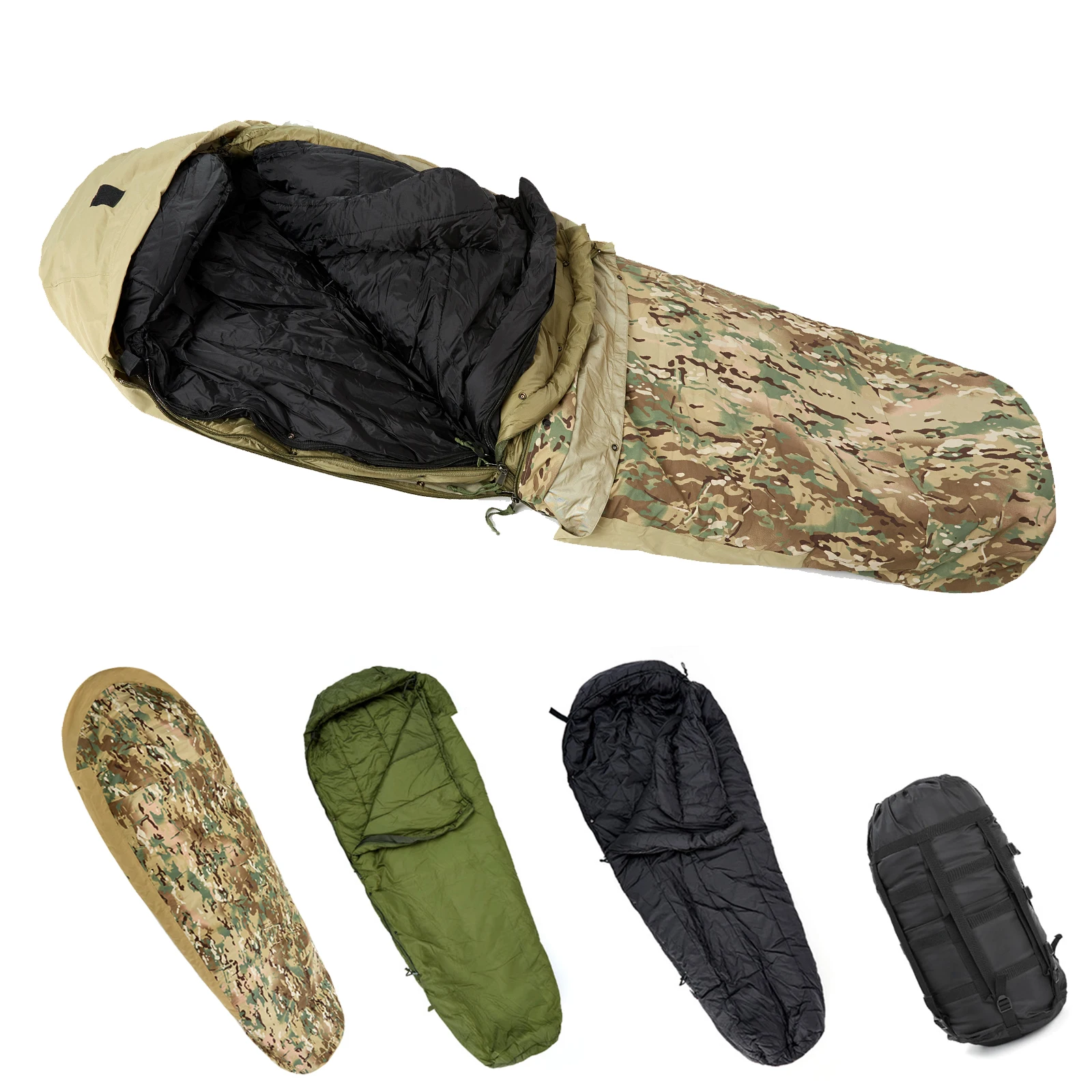 Akmax 4-Piece Military Modular Sleeping Bag System -40℃ Extreme Cold Waterproof Bivy Cover 4 Season Camping Survival Gear