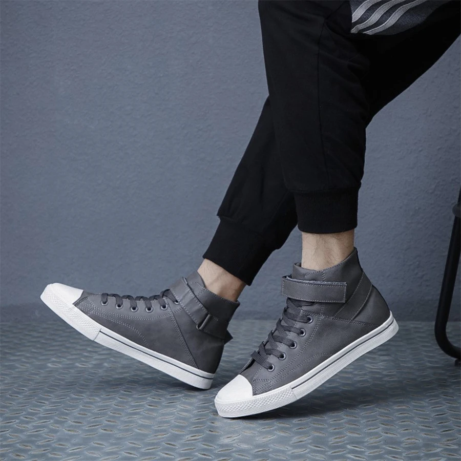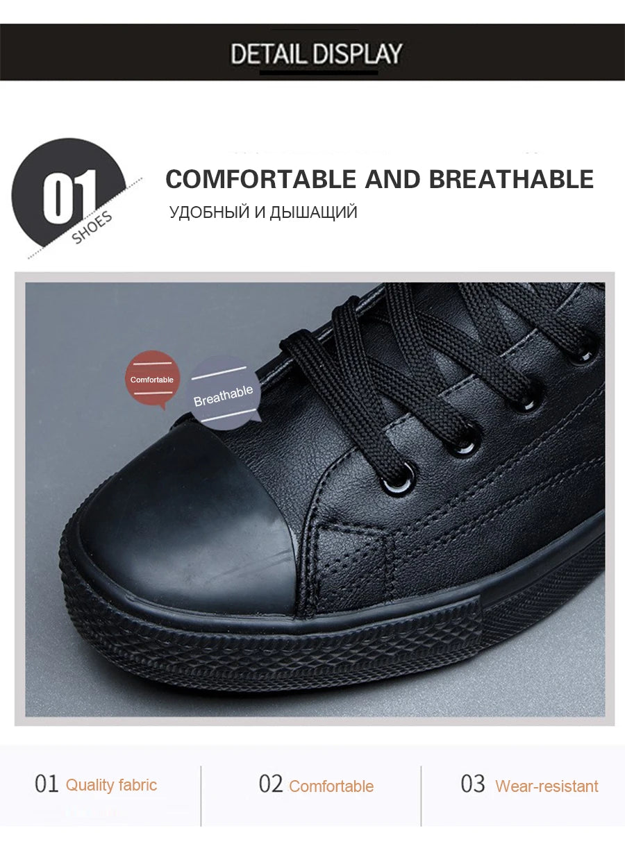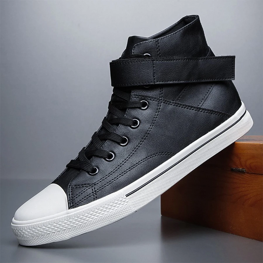 Ankle Boots Men Black PU Leather Shoes Autumn Winter Comfortable Platform Casual Shoes High-top 2022 Fashion Leahter Boots Man