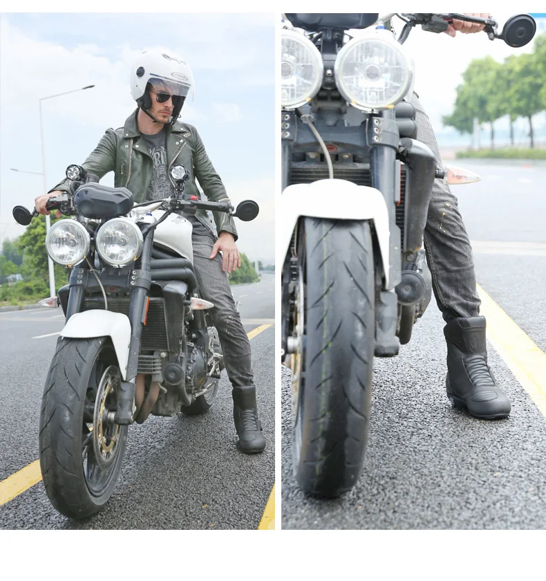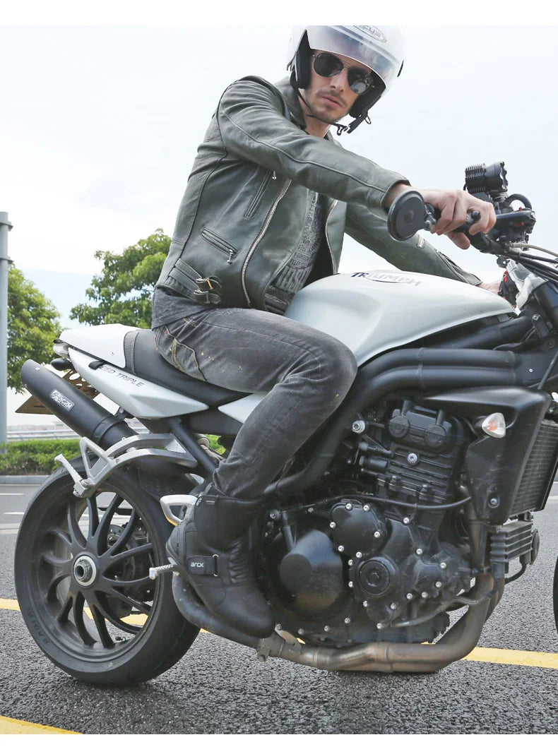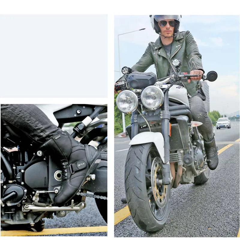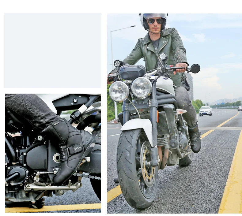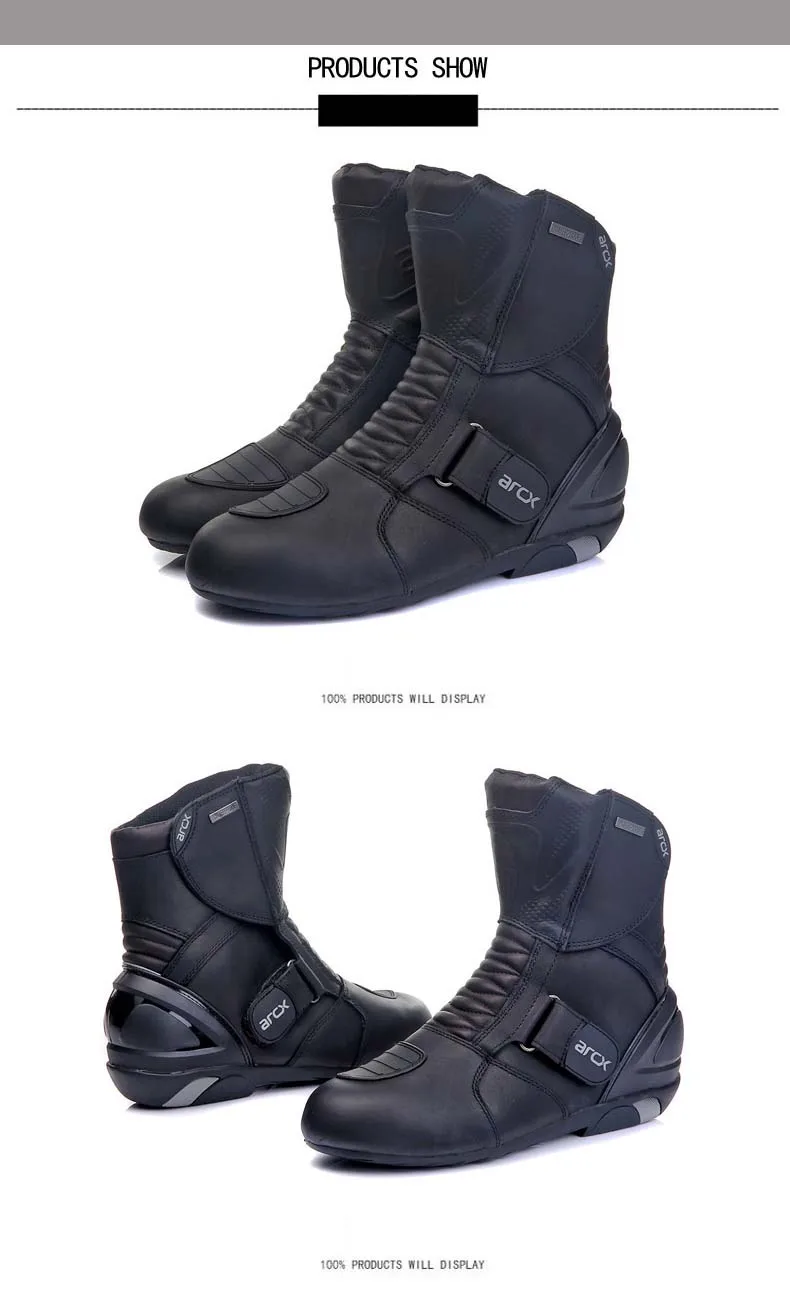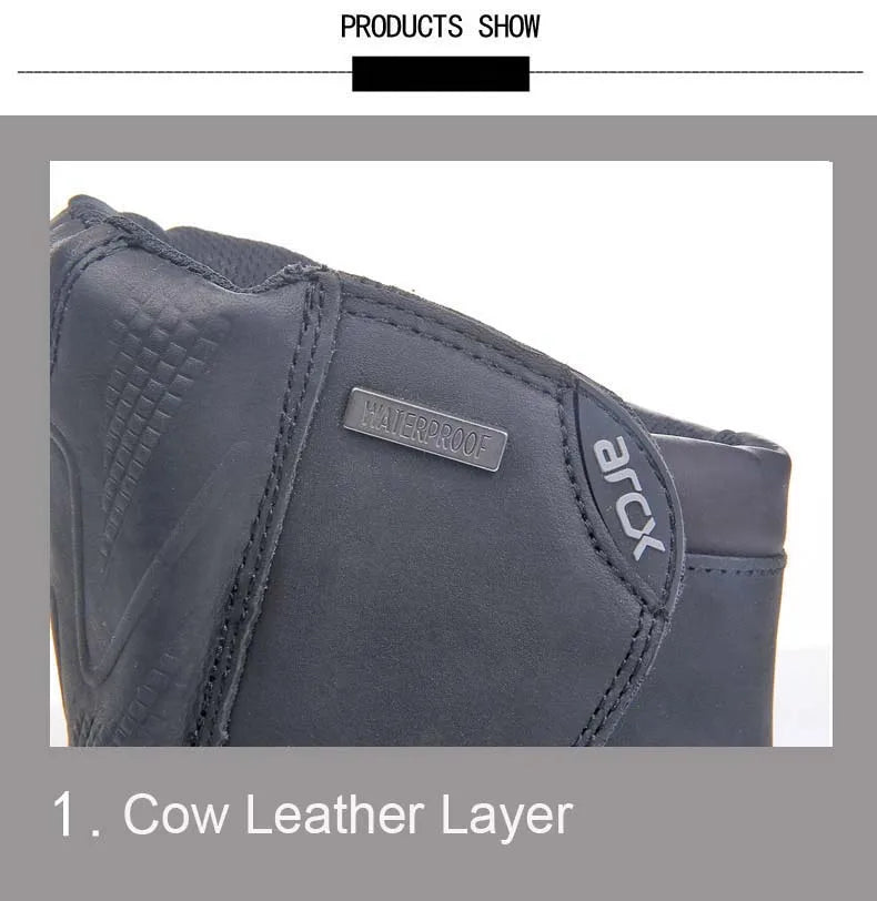 ARCX Motorcycle Boots Genuine Cow Leather Motocross Boots waterproof Moto Boots Motorbike Riding Boots Black Botas Moto