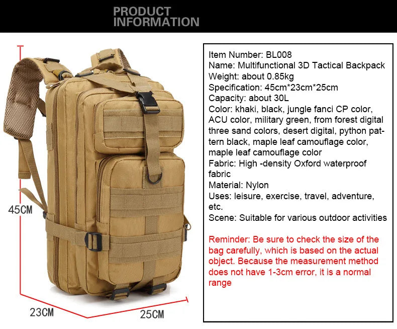 Army Tactical Backpack for Men 30L/50L Travel Camping Bag 1000D Military Hiking Supplies Sports Trekking Climbing Waterproof bag