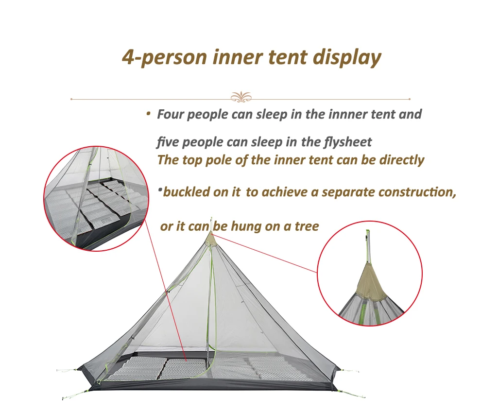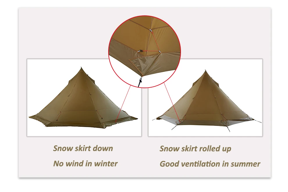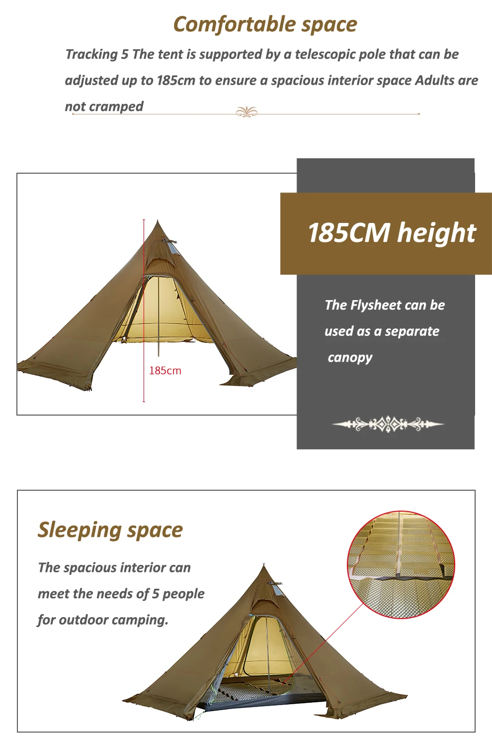ASTA GEAR Track 5 Pyramid tent bushcraf lightweight 4-5 people outdoor hiking camping with snow skirt rainproof windproof tent