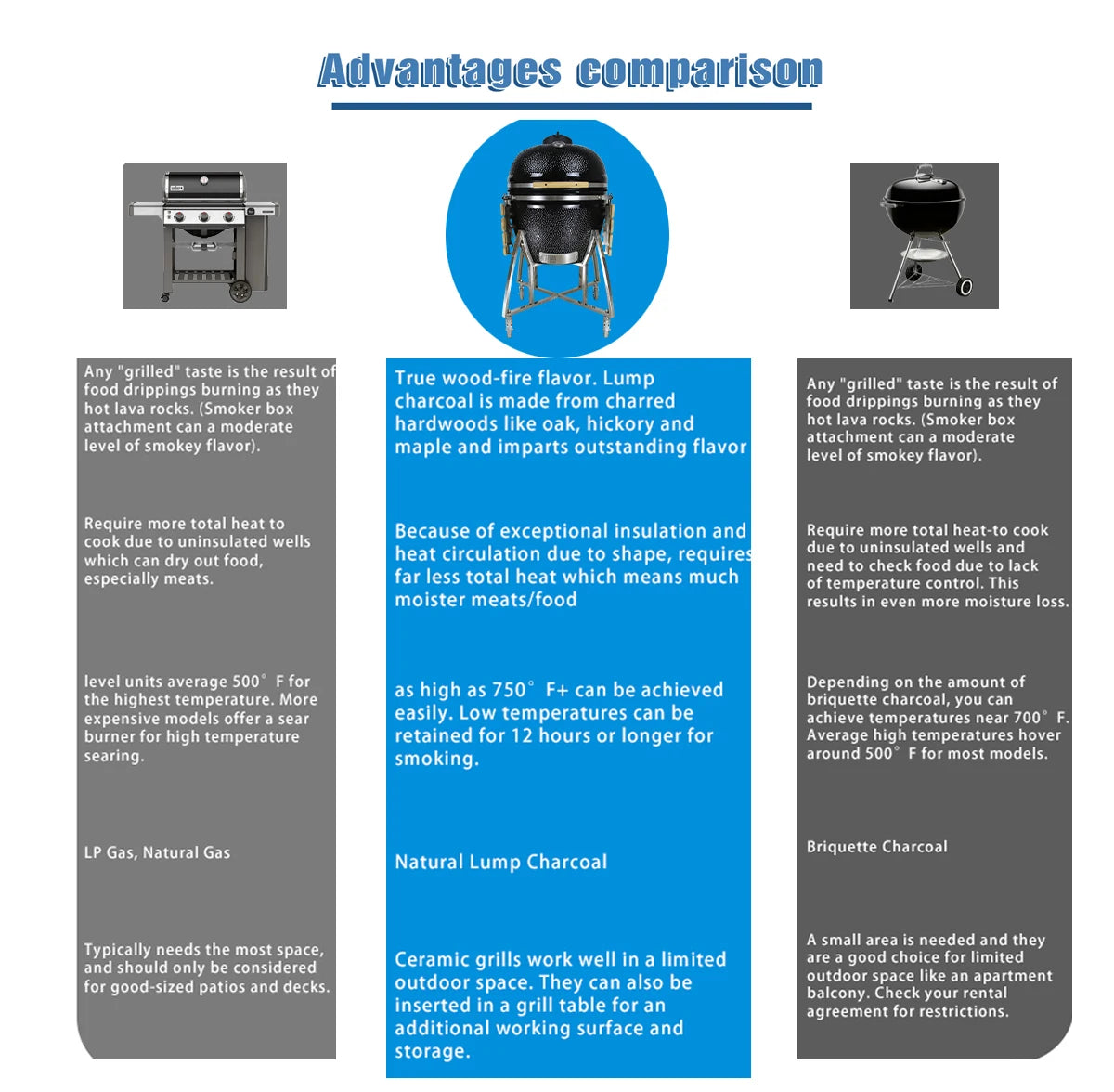2) Highest quality ceramic kamado bbq grills with EN1860,LFGB certificates.