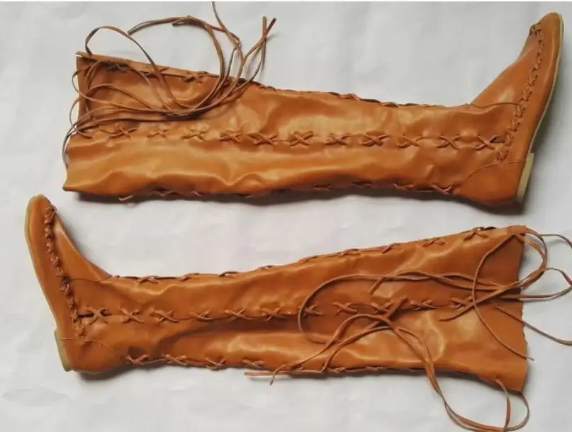 Autumn Over-the-Knee Boots Women Fashion Mid-Calf Sewing PU Flat Heels Lace Up Fashion Concise British Style Women Shoes Orange