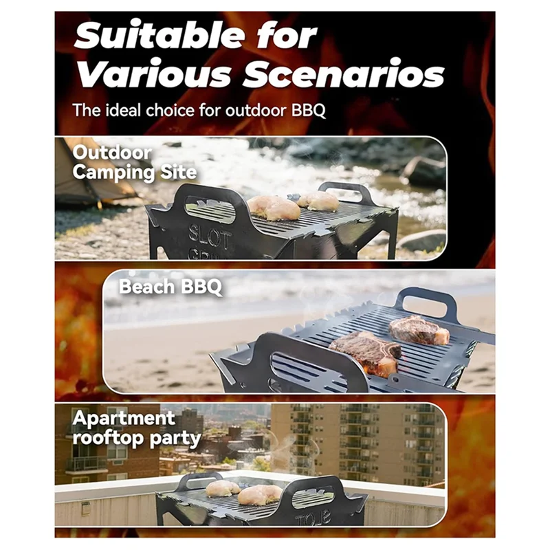 Tool-free setup - readys to grills in seconds: this grills BBQ collapsible features a smart interlocking slot system that assembles and disassembles in under 30 seconds-no screws, no tools.