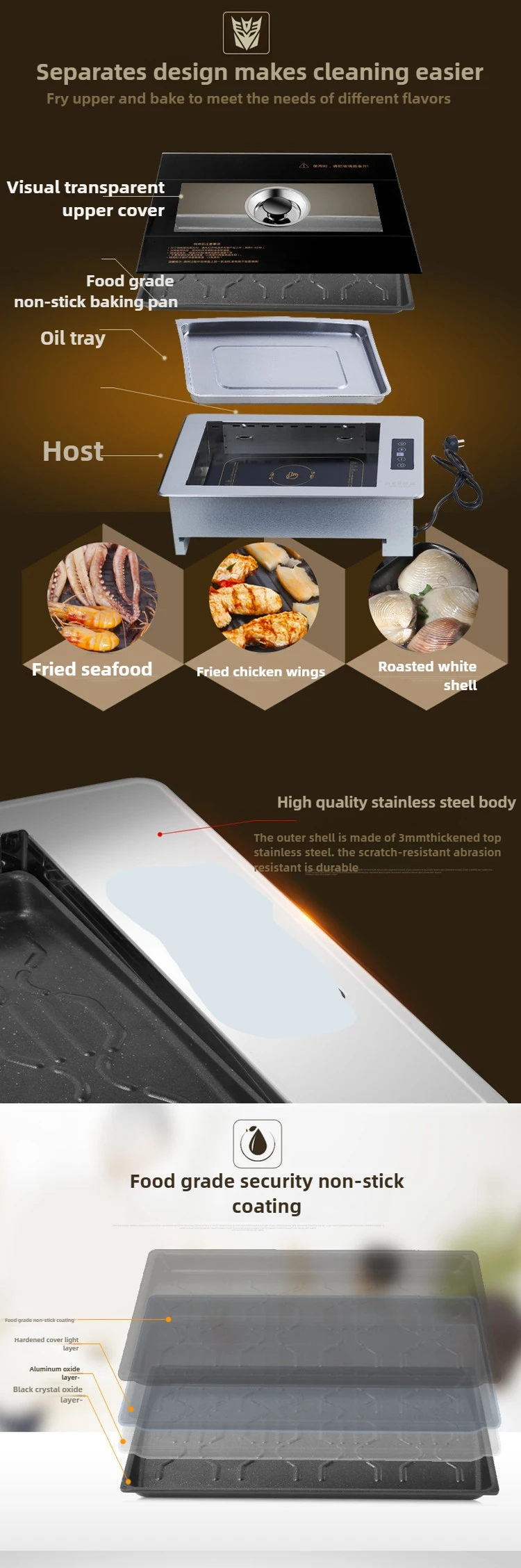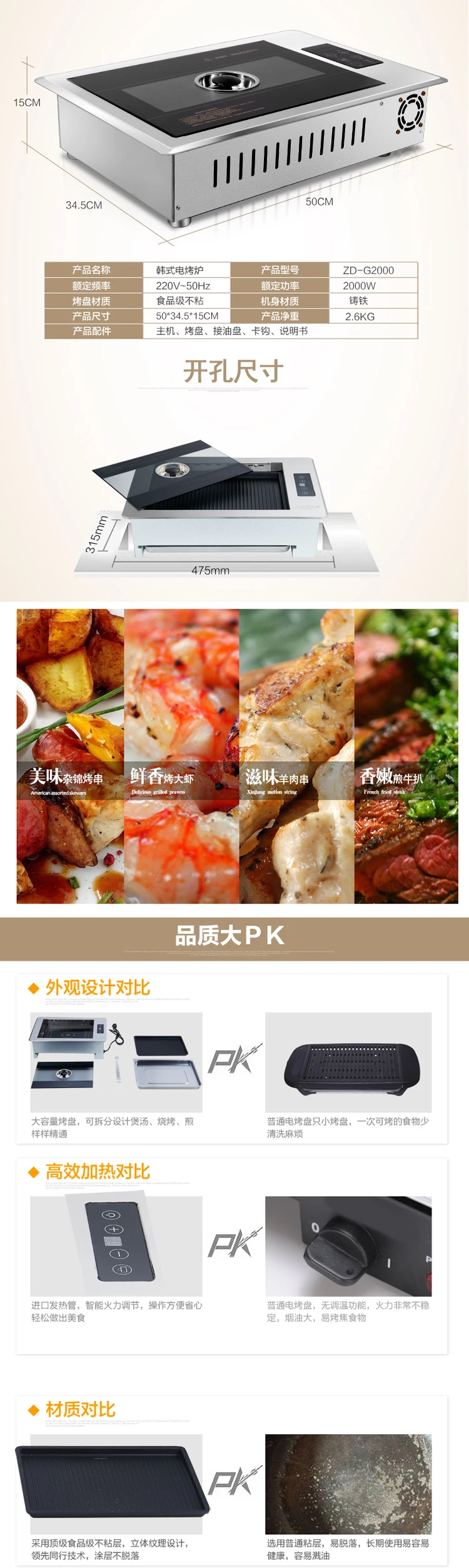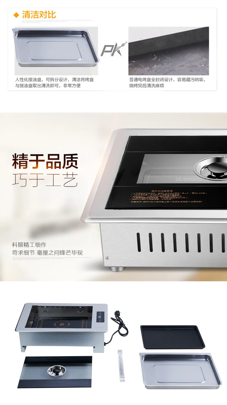 BBQ Grill Commercial 220V Korean Style Smokeless Square Stainless Steel Electric Grill