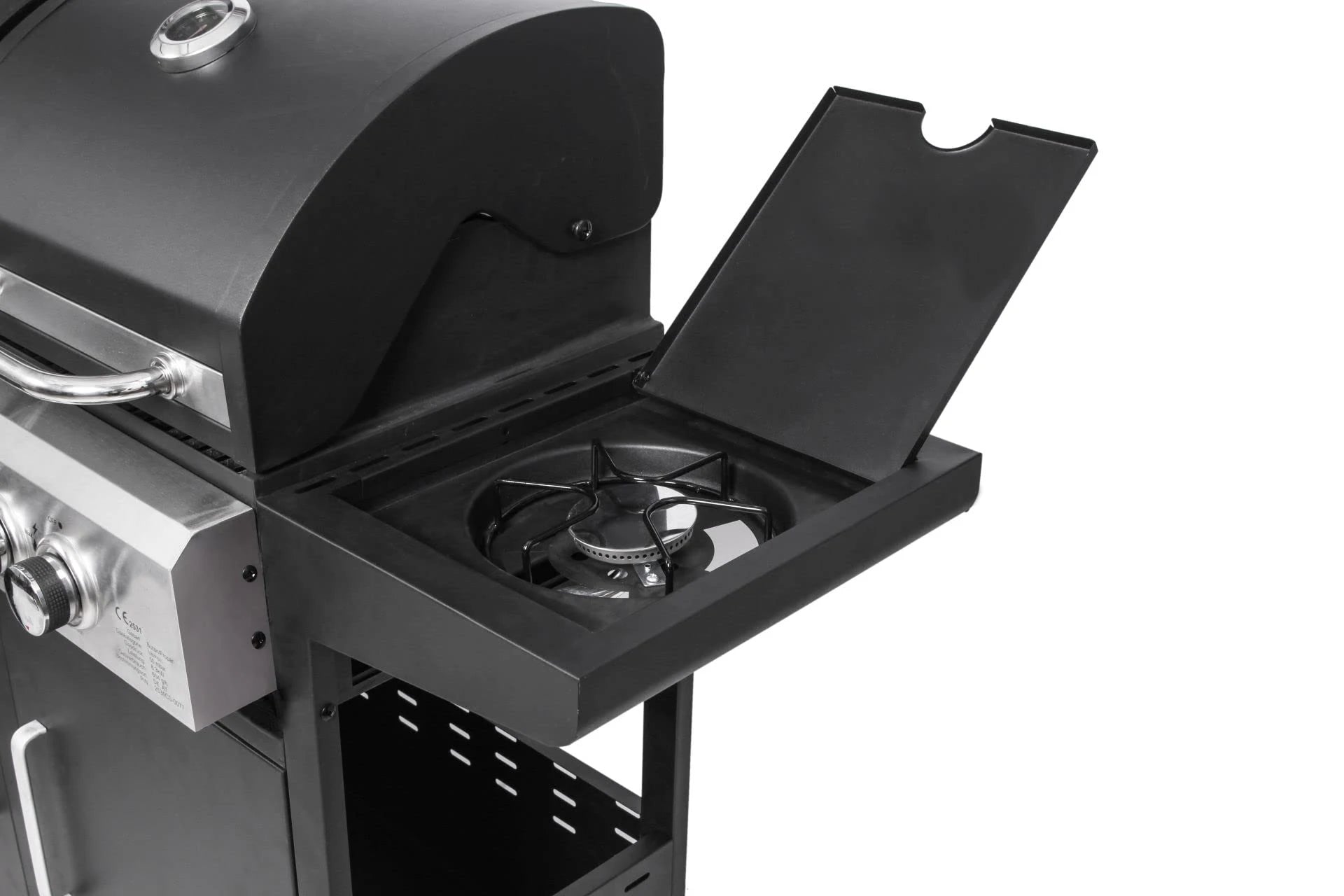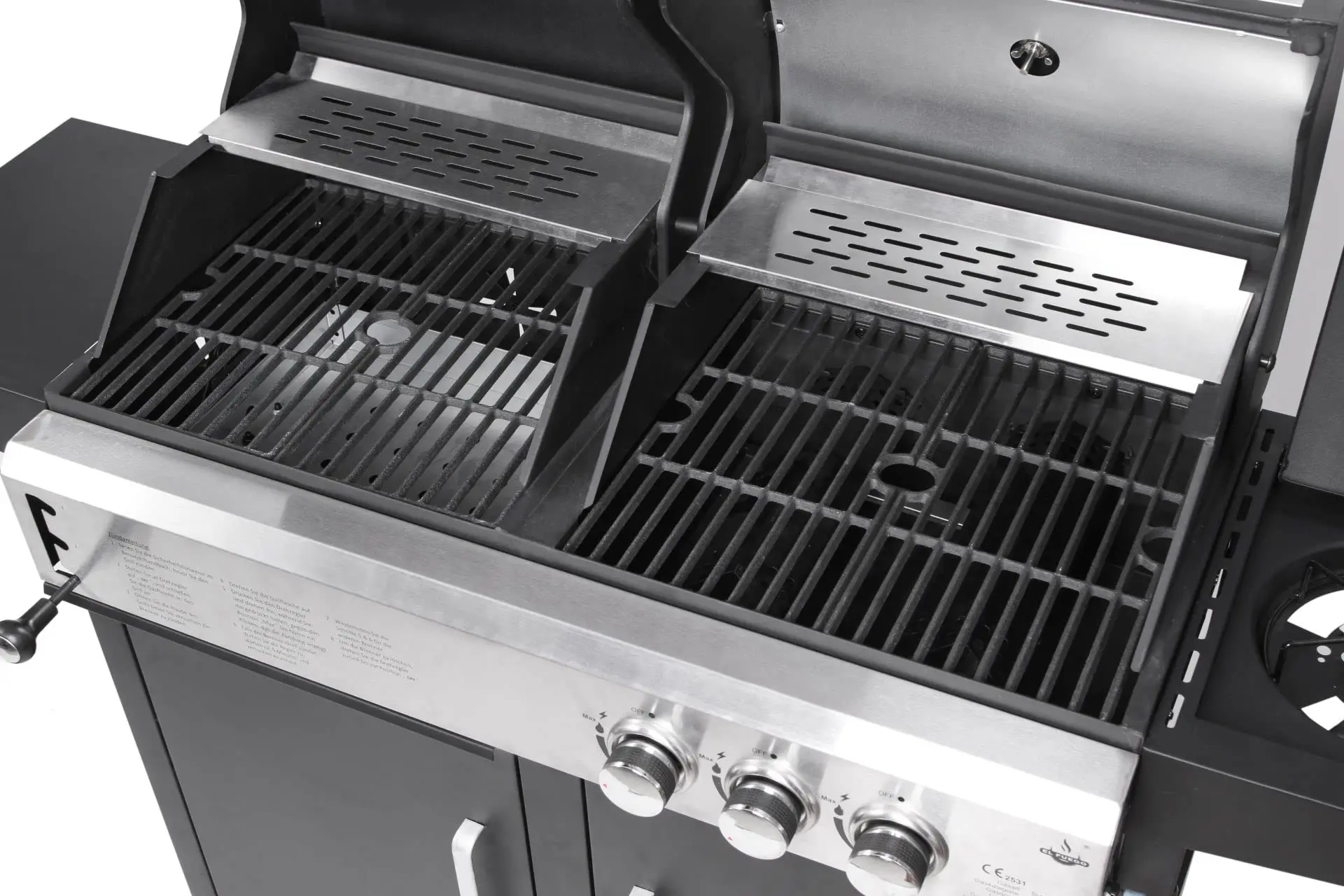 BBQ Grill Outdoor Large Hybrid 4 Burner Trolley Smokeless Dual Fuel Charcoal and Gas Combo with Side Burner
